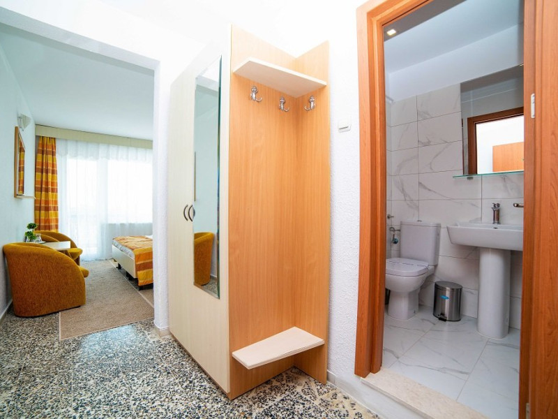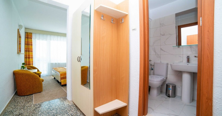 Camerele duble deluxe: renovate complet in 2019 si au in dotare mobilier nou,TV, minibar, AC, pardoseala mochetata, tamplarie PVC, plasa antiinsecte, balcon cu masuta cu scaune, baie cu dus spatioasa.