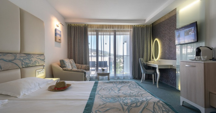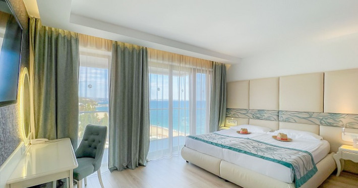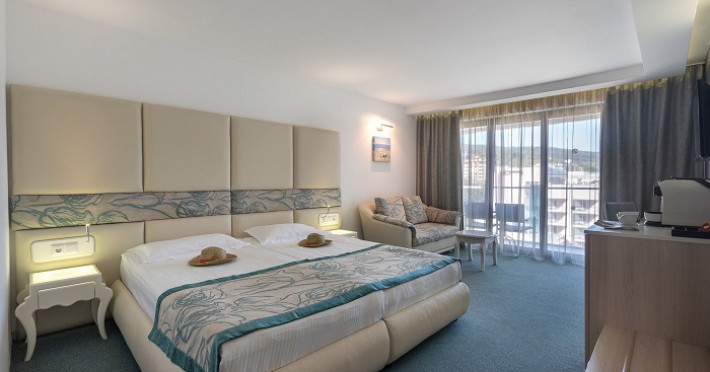 Toate camerele au vedere laterala sau directa la mare si dispun de baie cu dus sau cada, uscator de par, oglinda cosmetica, articole de toaleta marca RITUALS, telefon, aer conditionat, TV cu programe prin satelit, Wi-Fi gratuit, seif, mini bar (gratuit, in fiecare zi - apa, bauturi racoritoare, bere), espressor cu capsule, balcon.