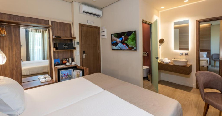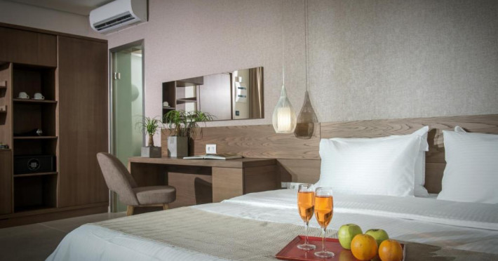 All rooms are equipped with air conditioning, a flat-screen TV with satellite channels, a kettle, a shower, free toiletries and a desk. Rooms are complete with a private bathroom equipped with a hair dryer, while most rooms also feature a balcony. The units include a wardrobe.