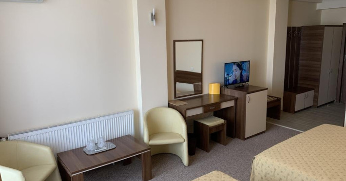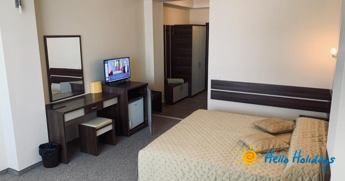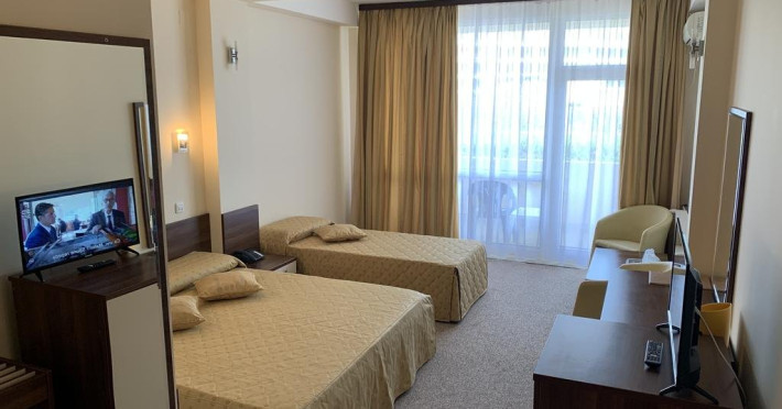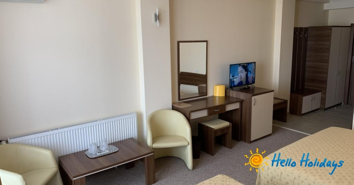 Camerele ofera o priveliste superba asupra marii si a lacului, sunt dotate cu mobilier nou, cu paturi matrimoniale sau doua paturi, fotolii, minibar, TV, internet, telefon, baie proprie, balcon, incalzire centrala si aer conditionat.