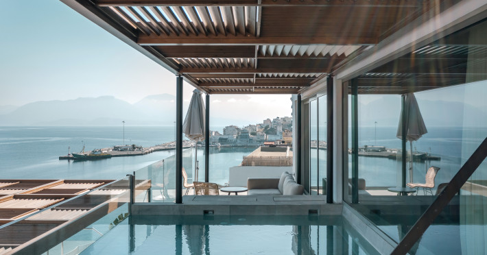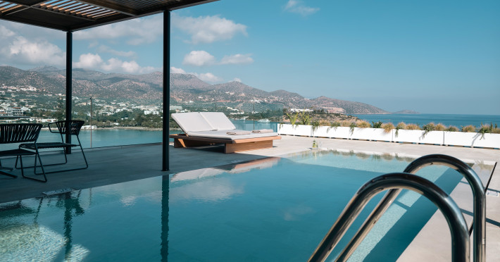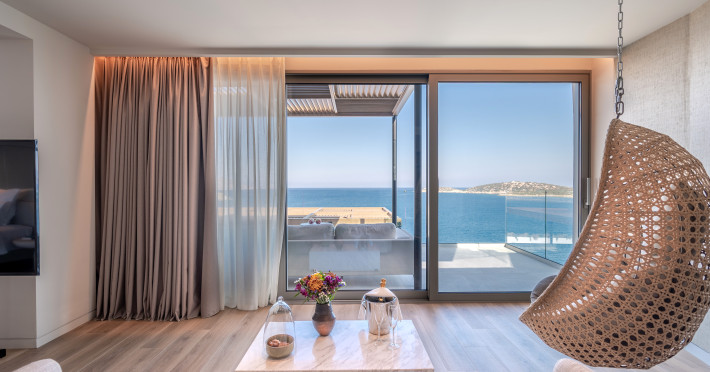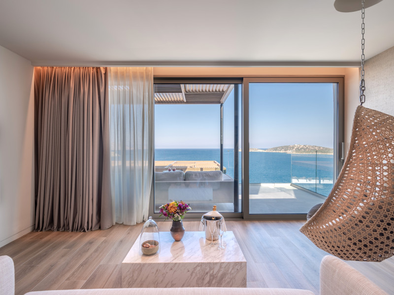 A SENSE OF ELEGANCE / RELAX AND UNWIND IN A HEAVENLY _LUXURY_ HIDEAWAY.A modern beach side hotel located at Agios Nikolaos, just 45 minutes from the Heraklion airport and 10 minutes from the picturesquely center of Agios Nikolaos. Ideally situated on the coastline, it offers breath taking, panoramic views on Mirabello Bay.