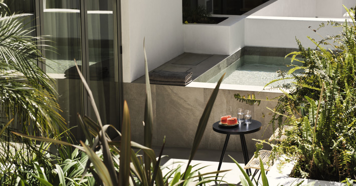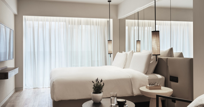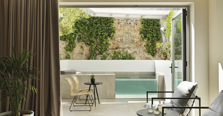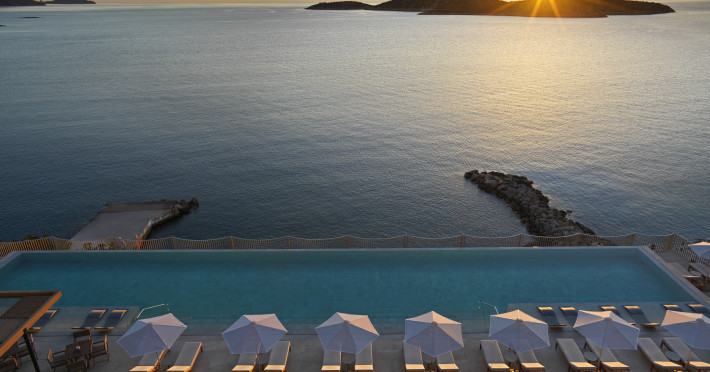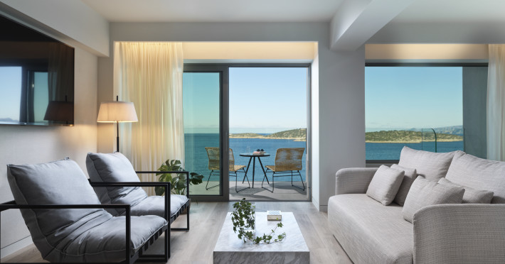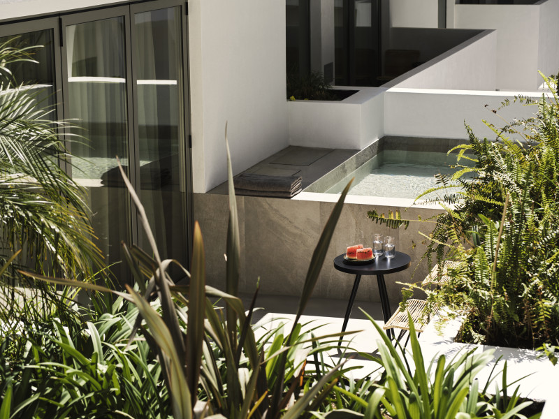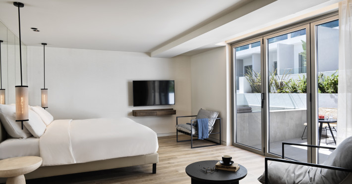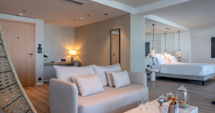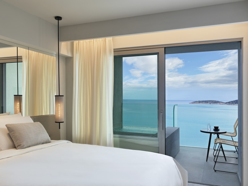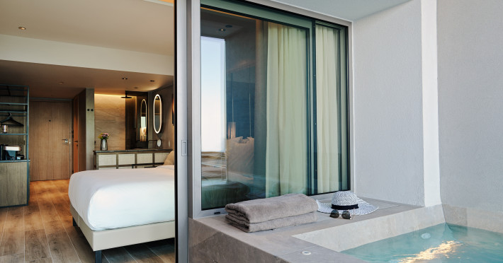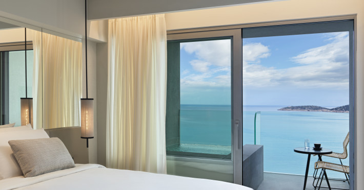 Niko Seaside Resort is a brand-new design hotel, inspired by the cosmopolitan vibes and eclectic aesthetic. It is an adult only hotel that offers you a contemporary and exclusive atmosphere, a chance to unwind in privacy.The hotel’s interior and philosophy are based on a mix of wood and marble paired with a palette that spans from slate gray to deep green and blue in all its hues.Rooms and suites offer an upscale luxury, modernity and minimalistic decoration, while most of them feature their own plunge pool. A total of 141 rooms and suites, offer a perfect blend of convenience and stylish comfort and give guests the possibility to choose in between rooms with panoramic sea view or atrium view.The spacious roof top pool along with the sunbeds is the perfect place to relax overlooking the endless views of the Aegean. Alongside a vibrant, stylish open-air rooftop bar promises moments of great chilla