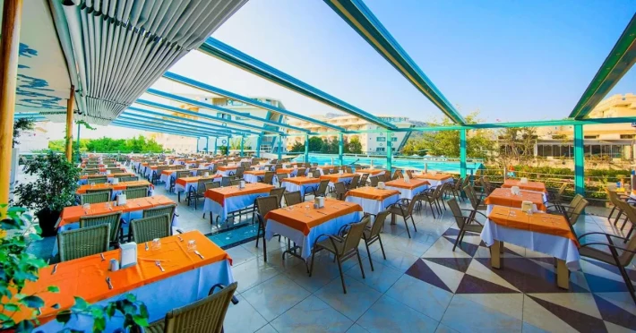 Statiunea ofera servicii in conceptul de ultra all inclusive. Vă puteți lua masa la restaurantul à la carte, restaurantul în aer liber și restaurantul interior al stațiunii. Vă puteți relaxa și împrospăta profitând de serviciile de wellness și masaj oferite în stațiune. Se organizeaza în restaurantul principal, în fiecare săptămână prezentări cu tematică turcească, italiană, mediteraneană și internațională.