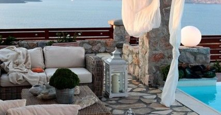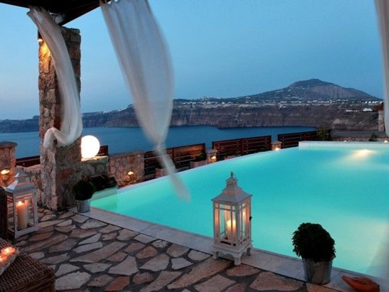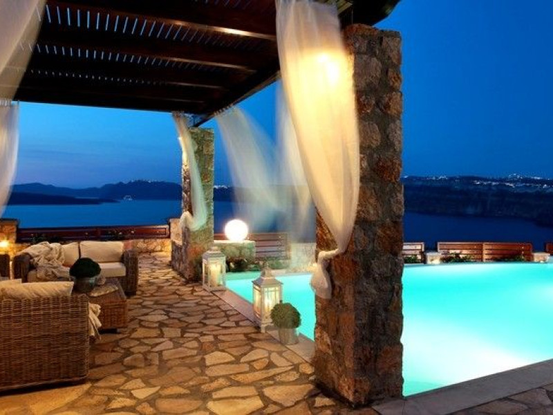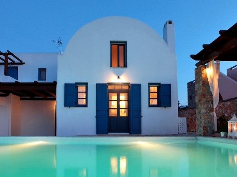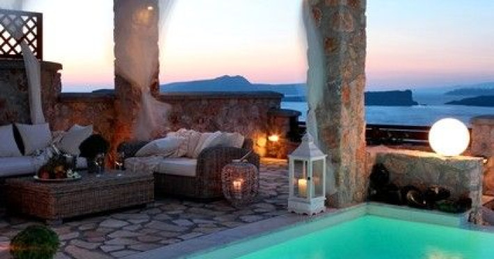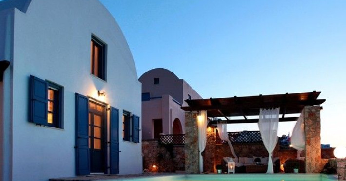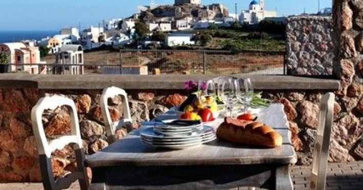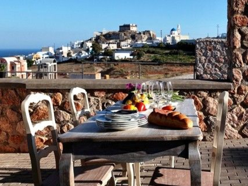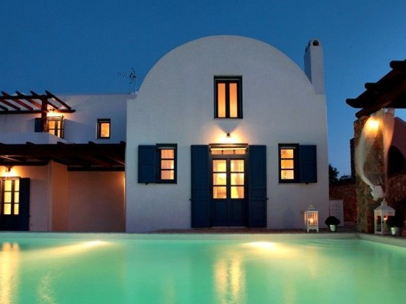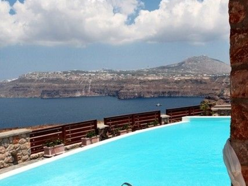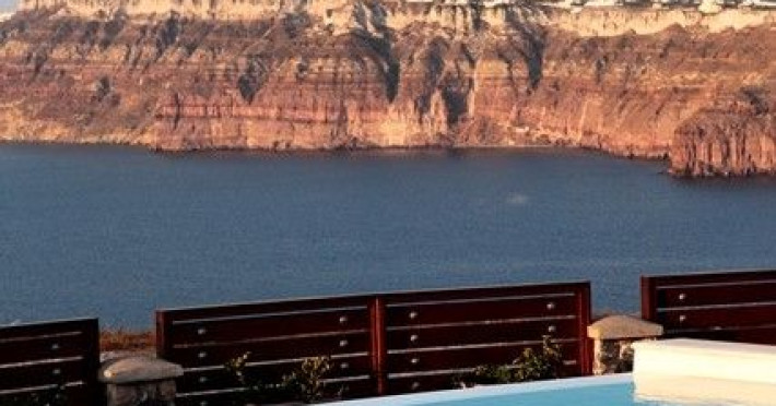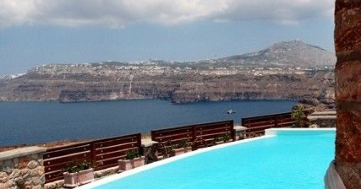 At Akrotiri in a beautiful spot with amazing views of the volcano and the caldera of is situated the beautiful 5 bedroom villa, Michaela Residence.As you enter from the main door to the living area the beauty reveals in front of your eyes. Colorful paintings, art objects, elegant furnishing, painted walls, wooden ceiling, fire place and stunning views, all in harmony that give the villa a very warm and playful character. You enjoy every moment being in this welcoming environment.There is also a dining area for 10 persons under a beautiful chandelier.The living area is equipped with high definition satellite TV, home theater, dvd player, hi fi, lap top computer, wi fi and telephone line open to local calls.On the same floor a corridor leads to the fully equipped kitchen that has a cozy dining corner. The kitchen walls are painted by a celebrity Greek artist.On this floor you can find the Lady’s bedroom. It has a romantic wooden double bed, with the famous painting of the red bicycle hanged above it, a vanity dressing area that can hold all the clothes of a lady and a big handcrafted mirror. The bedroom is served from a red bathroom with shower.On the upper floor is the Master’s bedroom with wooden floor, vaulted ceiling and a massive king size bed. You could even watch the sea from your bed through the window in front of you. All the above combined with art objects, paintings and an art deco arm chair create an atmospheric theater setting in this bedroom.A spacious dressing area is behind the bed. The bedroom is equipped with a big High definition TV, home theater, DVD player.Next to the Master’s bedroom is the Mezzanine bedroom. That is a bedroom with a white iron double bed exiting to a large terrace with panoramic views. Next to the bed a wooden ladder leads us to a cozy mezzanine with a double mattress. This bedroom is equipped with flat screen TV and dvd player.A blue bathroom with shower serves this floor.On the basement there is a comfortable bedroom suite that receives natural light from a window and has separate entrance to the courtyard, a fully equipped kitchen with washing machine and clothes dryer A bathroom with shower serves this level.There is also a second bedroom on this lower floor that receives light from the spa room nest door.On this lower floor there is also a fantastic spa room with indoor heated Jacuzzi.The spa room exits to the pool area.The house has a private courtyard with flowers, private infinity pool, fantastic sea views, a shaded lounge area under a pergola and sun beds. The lounge area is atmospheric especially in the night when it is candle lighted and you enjoy unlimited views from every corner of it. Stairs lead us to a large terrace on the upper floor that is equipped with a lounge area with views. On the back of the house there is a BBQ area, a wooden oven and a large wooden dining table overlooking the old Castle of Akrotiri.There is also private parking at the back of the house.At Akrotiri in a beautiful spot with amazing views of the volcano and the caldera of is situated the beautiful 5 bedroom villa, Michaela Residence.As you enter from the main door to the living area the beauty reveals in front of your eyes. Colorful paintings, art objects, elegant furnishing, painted walls, wooden ceiling, fire place and stunning views, all in harmony that give the villa a very warm and playful character. You enjoy every moment being in this welcoming environment.There is also a dining area for 10 persons under a beautiful chandelier.The living area is equipped with high definition satellite TV, home theater, dvd player, hi fi, lap top computer, wi fi and telephone line open to local calls.On the same floor a corridor leads to the fully equipped kitchen that has a cozy dining corner. The kitchen walls are painted by a celebrity Greek artist.On this floor you can find the Lady’s bedroom. It has a romantic wooden double bed, with the famous painting of the red bicycle hanged above it, a vanity dressing area that can hold all the clothes of a lady and a big handcrafted mirror. The bedroom is served from a red bathroom with shower.On the upper floor is the Master’s bedroom with wooden floor, vaulted ceiling and a massive king size bed. You could even watch the sea from your bed through the window in front of you. All the above combined with art objects, paintings and an art deco arm chair create an atmospheric theater setting in this bedroom.A spacious dressing area is behind the bed. The bedroom is equipped with a big High definition TV, home theater, DVD player.Next to the Master’s bedroom is the Mezzanine bedroom. That is a bedroom with a white iron double bed exiting to a large terrace with panoramic views. Next to the bed a wooden ladder leads us to a cozy mezzanine with a double mattress. This bedroom is equipped with flat screen TV and dvd player.A blue bathroom with shower serves this floor.On the basement there is a comfortable bedroom suite that receives natural light from a window and has separate entrance to the courtyard, a fully equipped kitchen with washing machine and clothes dryer A bathroom with shower serves this level.There is also a second bedroom on this lower floor that receives light from the spa room nest door.On this lower floor there is also a fantastic spa room with indoor heated Jacuzzi.The spa room exits to the pool area.The house has a private courtyard with flowers, private infinity pool, fantastic sea views, a shaded lounge area under a pergola and sun beds. The lounge area is atmospheric especially in the night when it is candle lighted and you enjoy unlimited views from every corner of it. Stairs lead us to a large terrace on the upper floor that is equipped with a lounge area with views. On the back of the house there is a BBQ area, a wooden oven and a large wooden dining table overlooking the old Castle of Akrotiri.There is also private parking at the back of the house.