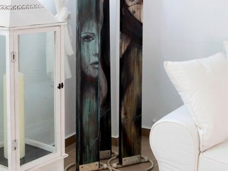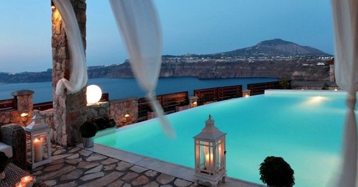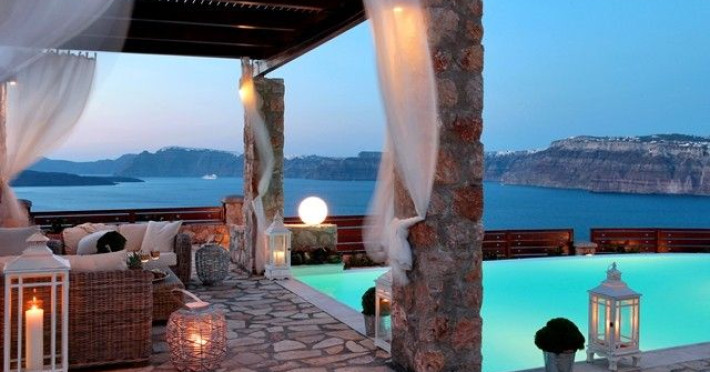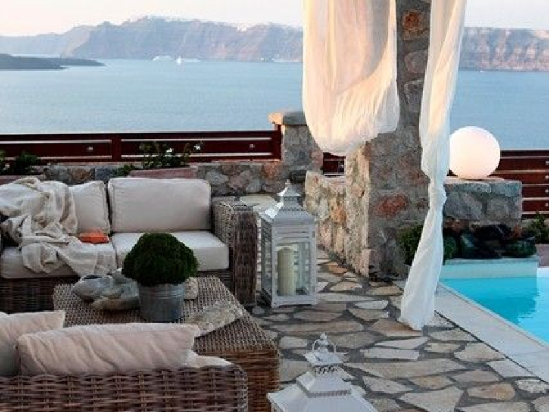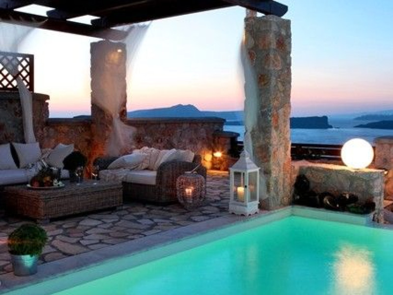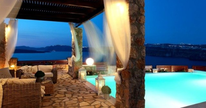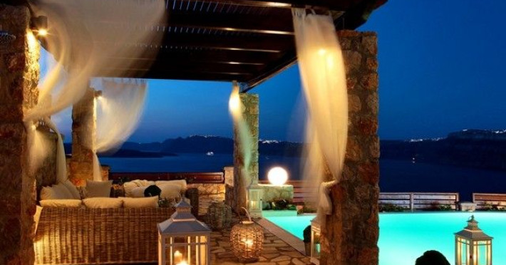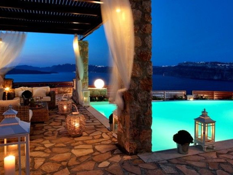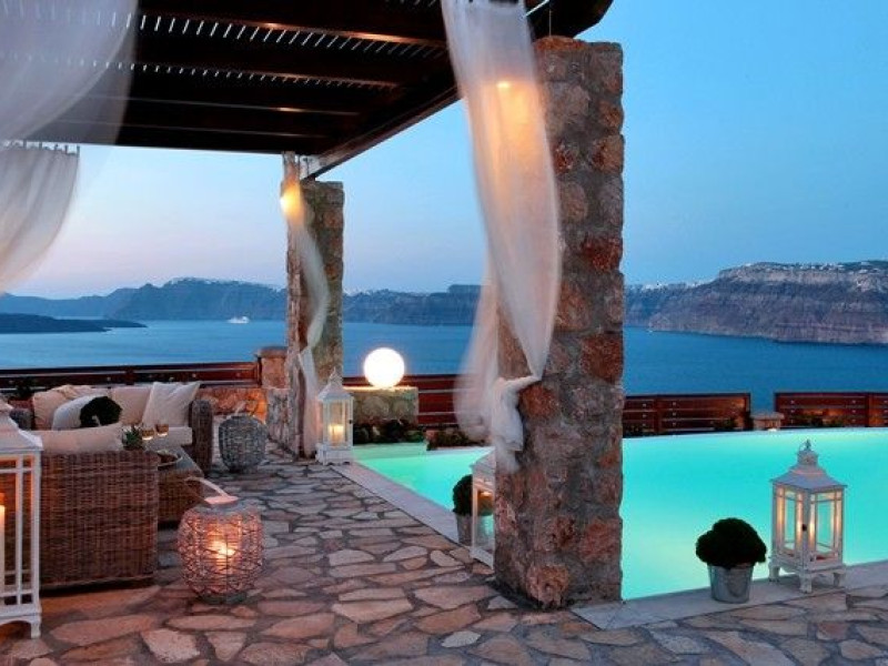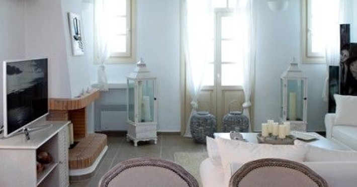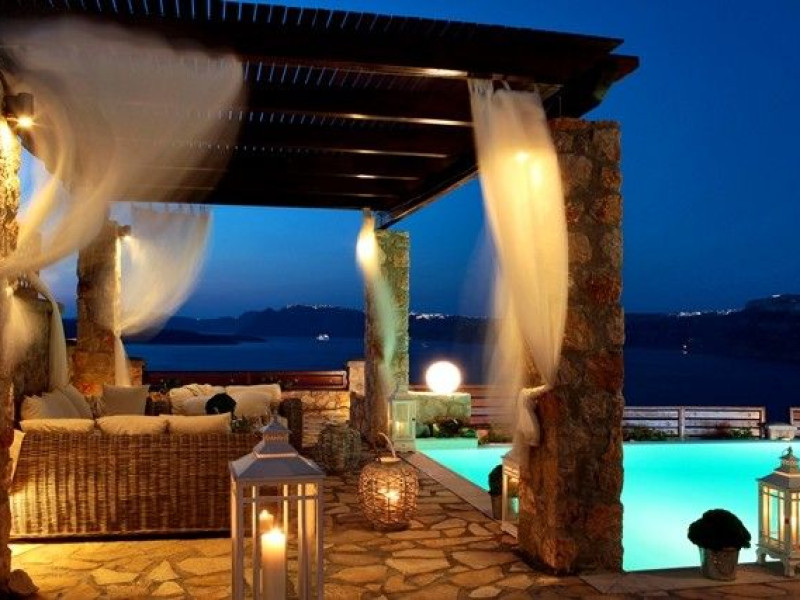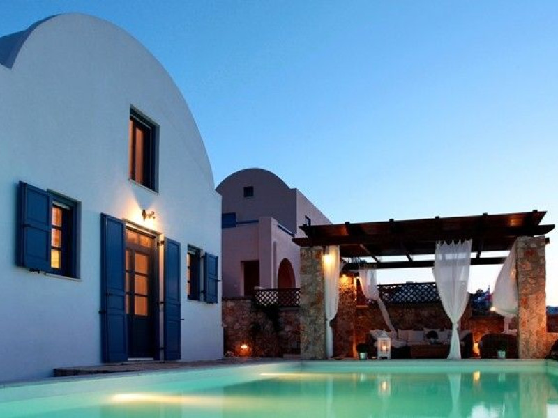 At Akrotiri in a beautiful spot with amazing views of the volcano and the caldera of is situated the beautiful 5 bedroom villa, Michaela Residence.As you enter from the main door to the living area the beauty reveals in front of your eyes. Colorful paintings, art objects, elegant furnishing, painted walls, wooden ceiling, fire place and stunning views, all in harmony that give the villa a very warm and playful character. You enjoy every moment being in this welcoming environment.There is also a dining area for 10 persons under a beautiful chandelier.The living area is equipped with high definition satellite TV, home theater, dvd player, hi fi, lap top computer, wi fi and telephone line open to local calls.On the same floor a corridor leads to the fully equipped kitchen that has a cozy dining corner. The kitchen walls are painted by a celebrity Greek artist.On this floor you can find the Lady’s bedroom. It has a romantic wooden double bed, with the famous painting of the red bicycle hanged above it, a vanity dressing area that can hold all the clothes of a lady and a big handcrafted mirror. The bedroom is served from a red bathroom with shower.On the upper floor is the Master’s bedroom with wooden floor, vaulted ceiling and a massive king size bed. You could even watch the sea from your bed through the window in front of you. All the above combined with art objects, paintings and an art deco arm chair create an atmospheric theater setting in this bedroom.A spacious dressing area is behind the bed. The bedroom is equipped with a big High definition TV, home theater, DVD player.Next to the Master’s bedroom is the Mezzanine bedroom. That is a bedroom with a white iron double bed exiting to a large terrace with panoramic views. Next to the bed a wooden ladder leads us to a cozy mezzanine with a double mattress. This bedroom is equipped with flat screen TV and dvd player.A blue bathroom with shower serves this floor.On the basement there is a comfortable bedroom suite that receives natural light from a window and has separate entrance to the courtyard, a fully equipped kitchen with washing machine and clothes dryer A bathroom with shower serves this level.There is also a second bedroom on this lower floor that receives light from the spa room nest door.On this lower floor there is also a fantastic spa room with indoor heated Jacuzzi.The spa room exits to the pool area.The house has a private courtyard with flowers, private infinity pool, fantastic sea views, a shaded lounge area under a pergola and sun beds. The lounge area is atmospheric especially in the night when it is candle lighted and you enjoy unlimited views from every corner of it. Stairs lead us to a large terrace on the upper floor that is equipped with a lounge area with views. On the back of the house there is a BBQ area, a wooden oven and a large wooden dining table overlooking the old Castle of Akrotiri.There is also private parking at the back of the house.At Akrotiri in a beautiful spot with amazing views of the volcano and the caldera of is situated the beautiful 5 bedroom villa, Michaela Residence.As you enter from the main door to the living area the beauty reveals in front of your eyes. Colorful paintings, art objects, elegant furnishing, painted walls, wooden ceiling, fire place and stunning views, all in harmony that give the villa a very warm and playful character. You enjoy every moment being in this welcoming environment.There is also a dining area for 10 persons under a beautiful chandelier.The living area is equipped with high definition satellite TV, home theater, dvd player, hi fi, lap top computer, wi fi and telephone line open to local calls.On the same floor a corridor leads to the fully equipped kitchen that has a cozy dining corner. The kitchen walls are painted by a celebrity Greek artist.On this floor you can find the Lady’s bedroom. It has a romantic wooden double bed, with the famous painting of the red bicycle hanged above it, a vanity dressing area that can hold all the clothes of a lady and a big handcrafted mirror. The bedroom is served from a red bathroom with shower.On the upper floor is the Master’s bedroom with wooden floor, vaulted ceiling and a massive king size bed. You could even watch the sea from your bed through the window in front of you. All the above combined with art objects, paintings and an art deco arm chair create an atmospheric theater setting in this bedroom.A spacious dressing area is behind the bed. The bedroom is equipped with a big High definition TV, home theater, DVD player.Next to the Master’s bedroom is the Mezzanine bedroom. That is a bedroom with a white iron double bed exiting to a large terrace with panoramic views. Next to the bed a wooden ladder leads us to a cozy mezzanine with a double mattress. This bedroom is equipped with flat screen TV and dvd player.A blue bathroom with shower serves this floor.On the basement there is a comfortable bedroom suite that receives natural light from a window and has separate entrance to the courtyard, a fully equipped kitchen with washing machine and clothes dryer A bathroom with shower serves this level.There is also a second bedroom on this lower floor that receives light from the spa room nest door.On this lower floor there is also a fantastic spa room with indoor heated Jacuzzi.The spa room exits to the pool area.The house has a private courtyard with flowers, private infinity pool, fantastic sea views, a shaded lounge area under a pergola and sun beds. The lounge area is atmospheric especially in the night when it is candle lighted and you enjoy unlimited views from every corner of it. Stairs lead us to a large terrace on the upper floor that is equipped with a lounge area with views. On the back of the house there is a BBQ area, a wooden oven and a large wooden dining table overlooking the old Castle of Akrotiri.There is also private parking at the back of the house.