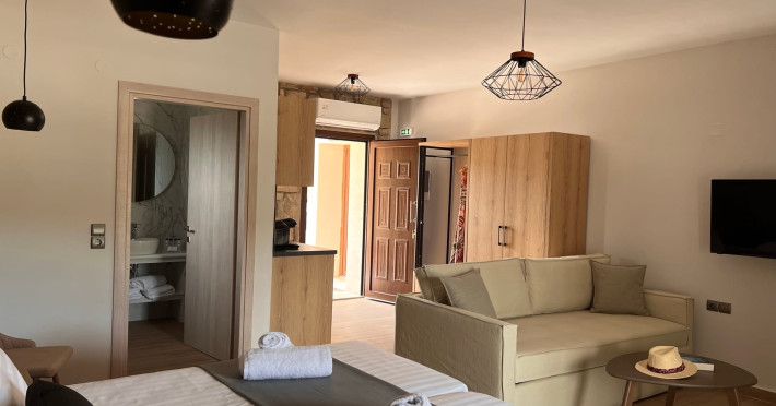 Dream vacation In a beautiful and quiet village, in the green nature of the area and just a few minutes away from heavenly beaches, Michelangelo suites amp; apartments promises to offer you a peaceful holiday, full of colors, for you and your family. Unique feeling An ideal destination for those looking for peace and relaxation, in traditional stone-built apartments, which blend harmoniously with the natural environment. The garden and the pool will offer you unique moments of relaxation, enjoying the Greek sun, relaxing afternoons with your favorite book and a glass of wine. Our facilities and the treasures of nature will create for you a unique experience for your holidays.Datorita dinamicitatii domeniului disponibilitatea ofertelor se modifica de la un moment la altul. De aceea ofertele sunt valabile in limita locurilor disponibile. Agentia nu este responsabila pentru eventualele neconcordante care pot aparea intre informatiile privind tarifele si alte detalii din site si informatiile primite in agentie. In aceste cazuri vor avea prioritate, intotdeauna, informatiile primite in agentie.