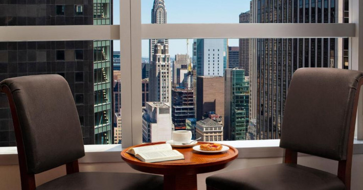 Unele camere au ferestre din podea pană in tavan și vor oferi uimitoare la orizontul orașului New York.