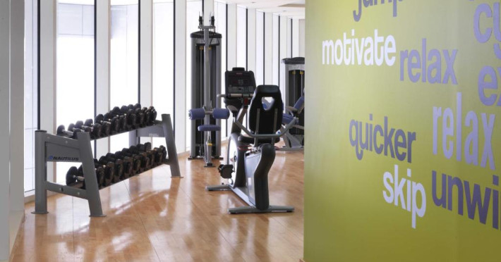 O sală de fitness cu echipamente necesare pentru o gamă variată de exerciții fizice este la dispoziția celor interesați.