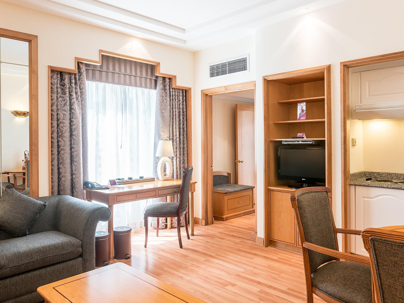 Modern, spacious interiors createa sophisticated atmosphere. Guest rooms feature air conditioning, complimentaryWi-Fi, satellite flat-screen televisions, minibars, safes, tea- andcoffee-making facilities, ironing equipment and desks. Bathrooms are equippedwith bidets, hair-dryers, bathrobes, slippers, deep-soaking tubs orrain-showerheads.