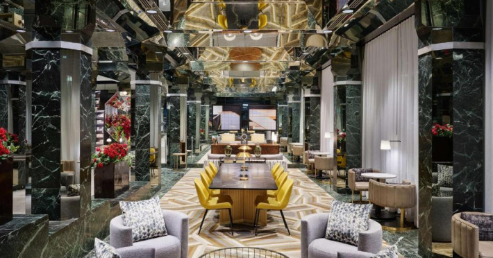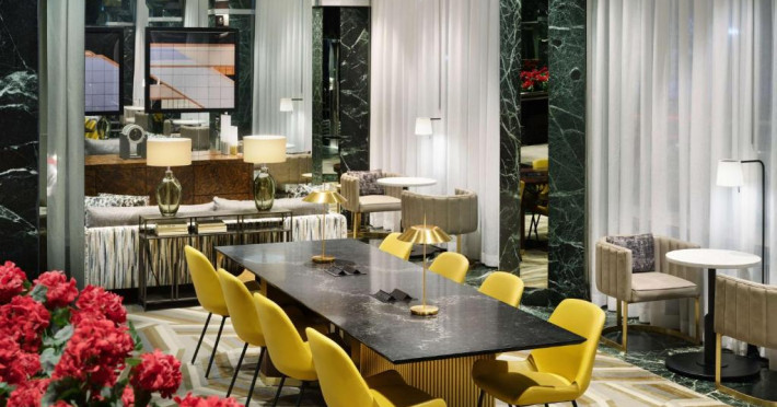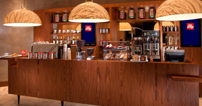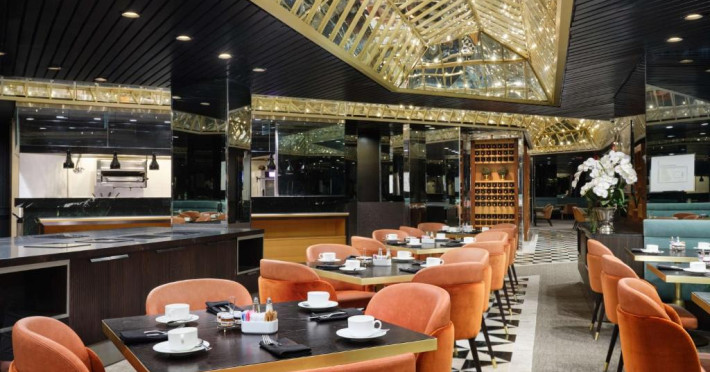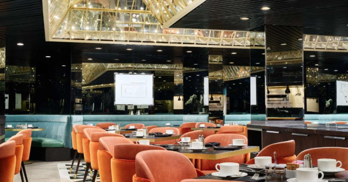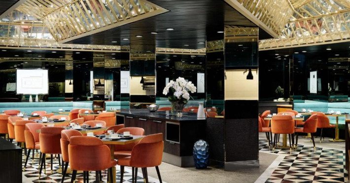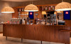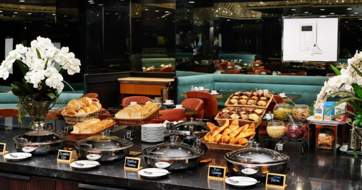 Există o cafenea grab and go, un restaurant cu servicii complete și un lounge executiv la fața locului.