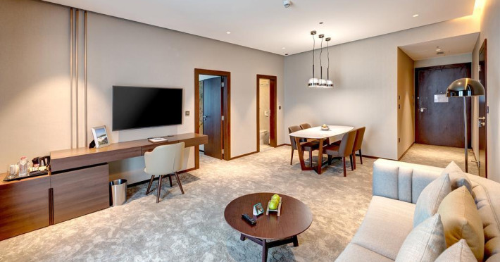 Millennium Place Barsha Heights Hotel is a brand new, 4-star business and family accommodation in Dubai where the fresh, modern art-deco interiors of 468 hotel rooms have been carefully designed to create a welcoming haven for guests. The hotel is located in one of Dubai’s most connected and lively areas, home to many creative SMEs and local businesses in close proximity to the city’s beaches, shopping malls, golf club, restaurants, cafes and major tourist attractions. Enjoy easy access from the hotel to all major points including Dubai Internet City, Dubai Media City, Dubai Marina, Jebel Ali and the Expo 2020 site. Our appealing hotel is also within walking distance to lovely outdoor natural areas like The Greens and Al Barsha Park, which offers a serene atmosphere with gardens, shaded walkways and a lake in the centre of the community. Situated just five minutes from Dubai Internet City Metro station and 20 minutes to Dubai World Trade Centre, the hotel provides guests with free parking and complimentary shuttle bus service to Mall of Emirates, Jumeirah Beach, DIC Metro Station and many other local landmarks. It’s a welcoming community with everything you need virtually at your door step, where you can relax and spend time with business associates, friends and loved ones.Both leisure and corporate travelers can unwind in two outdoor temperature-controlled swimming pools and a fully equipped health club. Young guests can have a safe splash in the kids pool adjacent to our main pools and enjoy activities at our full-fledged Kids Club. Offering impressive amenities including complimentary wireless Internet, our friendly and sincere promise to guests is to help you find your happy place here at Millennium Place Barsha Heights Hotel with our dedicated focus on generating smiles throughout the guest journey using our trademark handcrafted hospitality.Millennium Place Barsha Heights Hotel is a brand new, 4-star business and family accommodation in Dubai where the fresh, modern art-deco interiors of 468 hotel rooms have been carefully designed to create a welcoming haven for guests. The hotel is located in one of Dubai’s most connected and lively areas, home to many creative SMEs and local businesses in close proximity to the city’s beaches, shopping malls, golf club, restaurants, cafes and major tourist attractions. Enjoy easy access from the hotel to all major points including Dubai Internet City, Dubai Media City, Dubai Marina, Jebel Ali and the Expo 2020 site. Our appealing hotel is also within walking distance to lovely outdoor natural areas like The Greens and Al Barsha Park, which offers a serene atmosphere with gardens, shaded walkways and a lake in the centre of the community. Situated just five minutes from Dubai Internet City Metro station and 20 minutes to Dubai World Trade Centre, the hotel provides guests with free parking and complimentary shuttle bus service to Mall of Emirates, Jumeirah Beach, DIC Metro Station and many other local landmarks. It’s a welcoming community with everything you need virtually at your door step, where you can relax and spend time with business associates, friends and loved ones.Both leisure and corporate travelers can unwind in two outdoor temperature-controlled swimming pools and a fully equipped health club. Young guests can have a safe splash in the kids pool adjacent to our main pools and enjoy activities at our full-fledged Kids Club. Offering impressive amenities including complimentary wireless Internet, our friendly and sincere promise to guests is to help you find your happy place here at Millennium Place Barsha Heights Hotel with our dedicated focus on generating smiles throughout the guest journey using our trademark handcrafted hospitality.