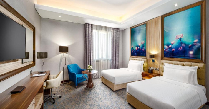 Hotelul va pune la dispoziție oaspeților camere cu aer condiționat, birou, ceainic, minibar, cutie de valori, TV cu ecran plat și baie privată cu bideu. Unele camere includ o chicinetă cu frigider și cuptor cu microunde. Toate unitățile includ un dulap.