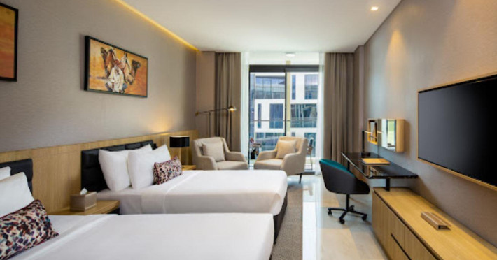Explore our 4-star Dubai hotel in Mirdif Hills. Hayyakum! Millennium Place Mirdif is a lifestyle destination of dining, hospitality, and entertainment a few minutes away from Dubai International Airport, Mirdif City Center, and Dubai Safari Park. Visit the first hotel in this Dubai neighborhood, overlooking the beautiful Mushrif Park. The home of more than 70,000 trees offers a fantastic range of family fun adventures from zip-lining, children’s playgrounds, horseback riding, cycle track, BBQ Areas, and much more. Connected to Mirdif Hills Avenue, our 4-star hotel features 116 rooms and suites, 132 studios and one-bedroom apartments, 6 restaurants and bars, a ballroom catering up to 300 guests, 2 meeting rooms, a rooftop pool & gym overlooking the park. Millennium Place Mirdif presents a flavorful dining palette. Start your day with an immersive international breakfast buffet or à la carte options at B Social, our laid-back all-day dining. At lunch, spoil your taste buds with Lebanese and Armenian cuisine at Batchig, followed by a refreshing drink at our social pub, The Urban Bar, or enjoy an afternoon cigar at Sala De Cigar; the journey continues with dinner at Hunter & Barrel Steakhouse. Of course, your experience is not complete without adding some splashes to your day at Vola Rooftop Lounge surrounded by the scenery of Mushrif Park’s natural splendour.Explore our 4-star Dubai hotel in Mirdif Hills. Hayyakum! Millennium Place Mirdif is a lifestyle destination of dining, hospitality, and entertainment a few minutes away from Dubai International Airport, Mirdif City Center, and Dubai Safari Park. Visit the first hotel in this Dubai neighborhood, overlooking the beautiful Mushrif Park. The home of more than 70,000 trees offers a fantastic range of family fun adventures from zip-lining, children’s playgrounds, horseback riding, cycle track, BBQ Areas, and much more. Connected to Mirdif Hills Avenue, our 4-star hotel features 116 rooms and suites, 132 studios and one-bedroom apartments, 6 restaurants and bars, a ballroom catering up to 300 guests, 2 meeting rooms, a rooftop pool & gym overlooking the park. Millennium Place Mirdif presents a flavorful dining palette. Start your day with an immersive international breakfast buffet or à la carte options at B Social, our laid-back all-day dining. At lunch, spoil your taste buds with Lebanese and Armenian cuisine at Batchig, followed by a refreshing drink at our social pub, The Urban Bar, or enjoy an afternoon cigar at Sala De Cigar; the journey continues with dinner at Hunter & Barrel Steakhouse. Of course, your experience is not complete without adding some splashes to your day at Vola Rooftop Lounge surrounded by the scenery of Mushrif Park’s natural splendour.