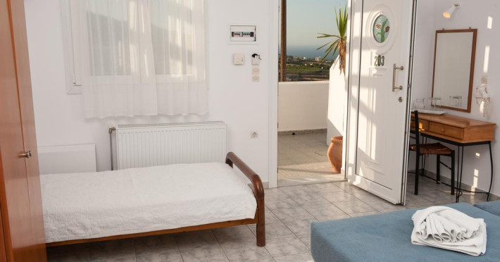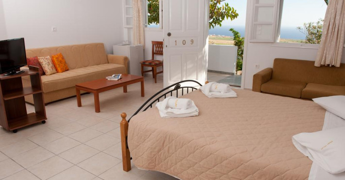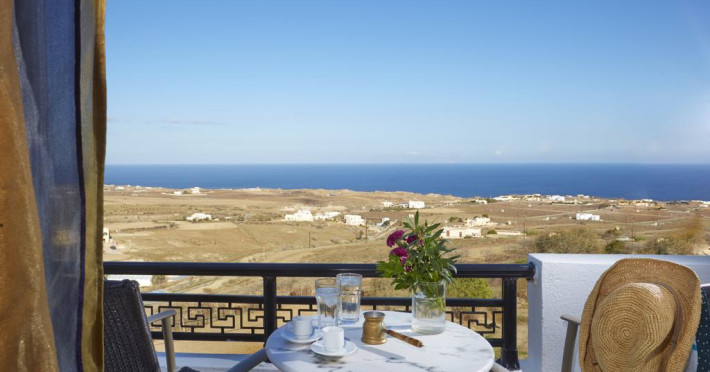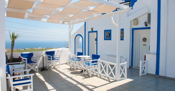 Cel mai apropiat aeroport este Aeroportul Internaţional din Santorini, situat la o distanță de 3,7 km. La cerere proprietatea organizează transfer la/de la aeroport contra cost.