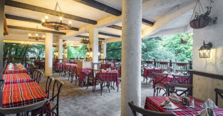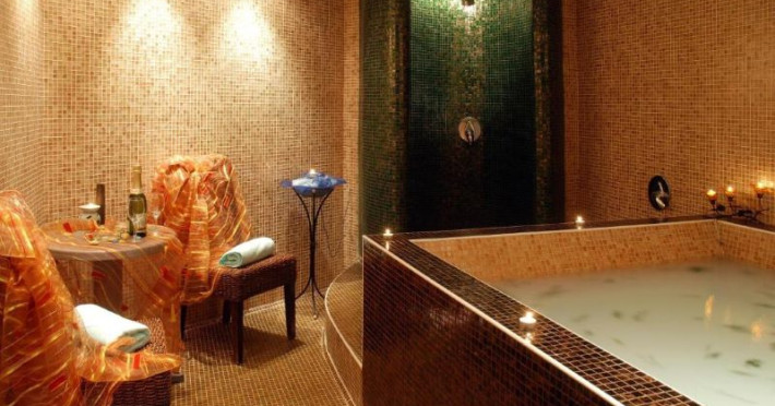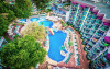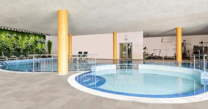Oaspeții se pot relaxa în cele două piscine cu tobogane de apă, terasa echipată cu șezlonguri și umbrele, precum și în piscina interioară.