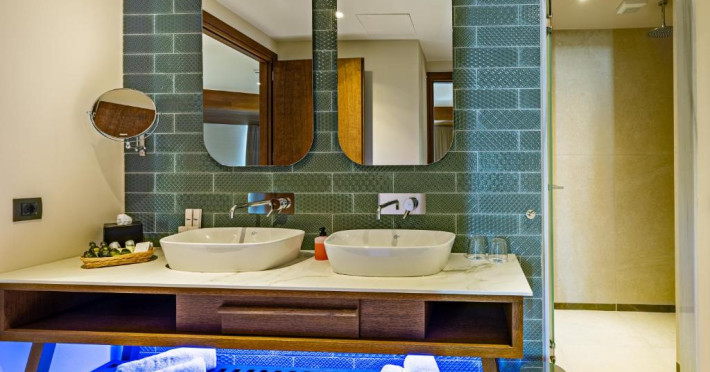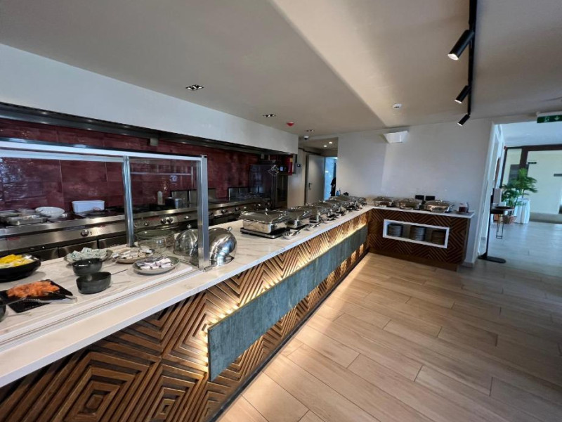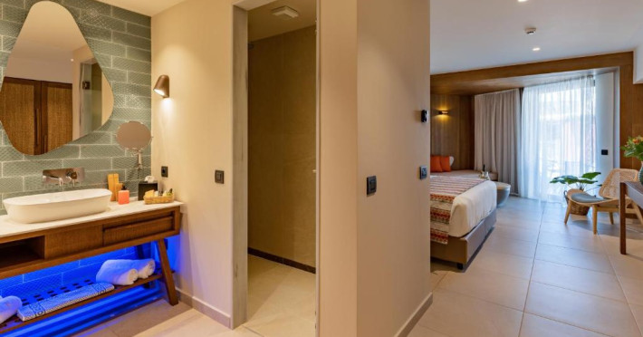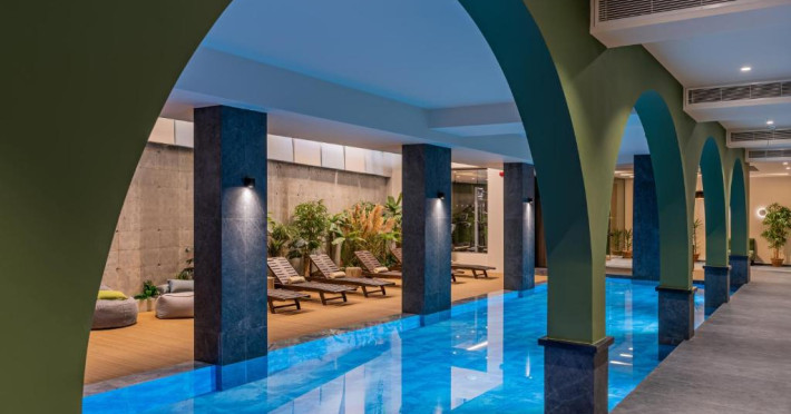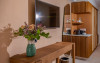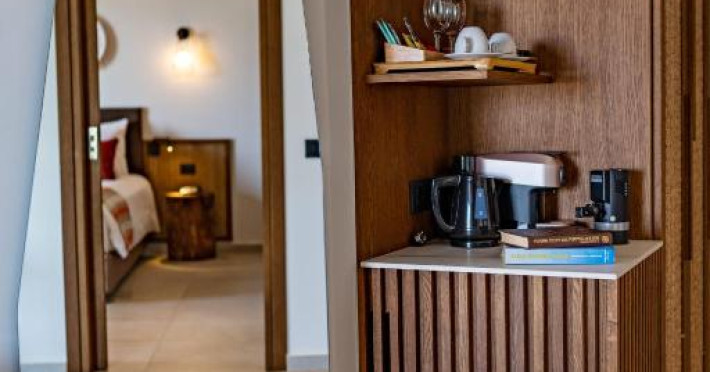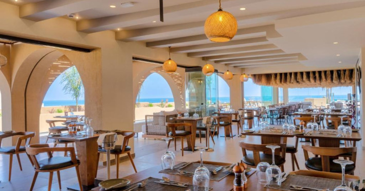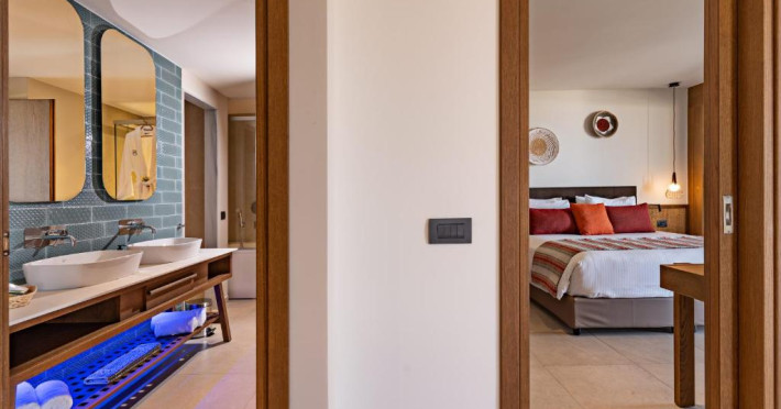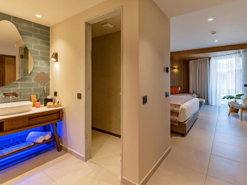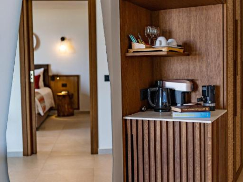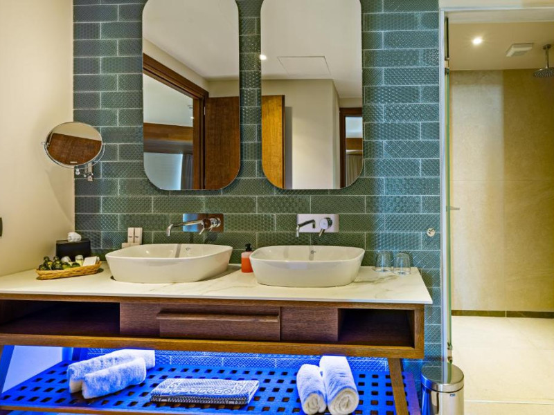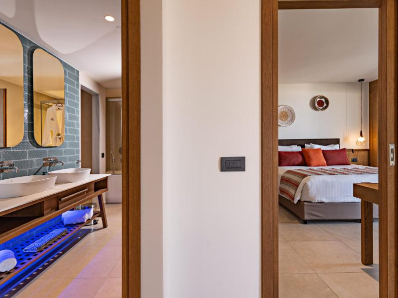 Camerele elegante beneficiază de design contemporan și balcoane private, multe dintre ele cu vedere spre Marea Egee. Facilitățile premium includ un centru spa sofisticat cu tratamente de relaxare, o piscină infinity cu șezlonguri confortabile și un restaurant à la carte care servește specialități mediteraneene autentice.