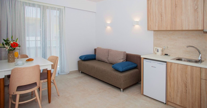 Minos Aparthotel are în apropiere o plajă cu nisip. Pe plajă există șezlonguri și umbrele de plajă contra cost.