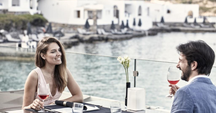 La Minos Beach Art Hotel oaspeții au la dispoziție 3 restaurante unde pot savura mâncăruri delicioase, în stil bufet sau à la carte. Preparate din bucătăria internațională și mediteraneană așteaptă să fie degustate în fiecare zi la micul dejun, prânz și cină. Masa poate fi servită atât în interior, cît si în aer liber, pe terasă, în funcție de vreme. 3 baruri, dintre care unul la piscină, sunt disponibile cu o ofertă variată de băuturi răcoritoare și alcoolice. În cadrul proprietății există și o cafenea ideală pentru o gustare rapidă. Pentru cei cu anumite nevoi de nutriție, Minos Beach Art Hotel oferă meniuri pentru diete speciale.