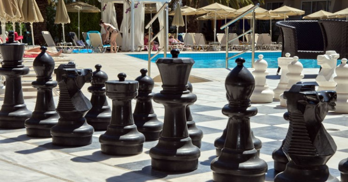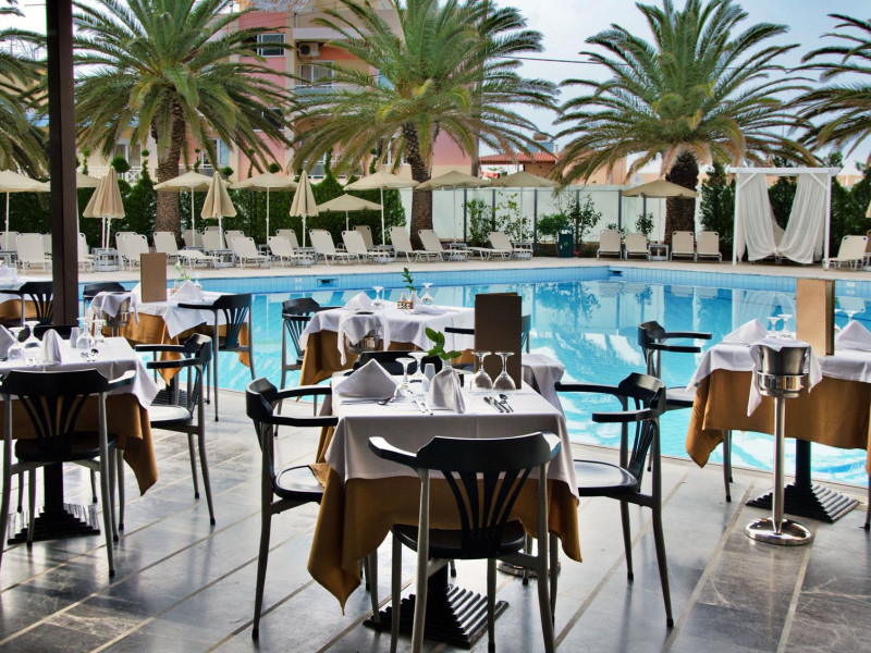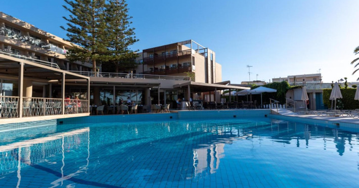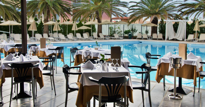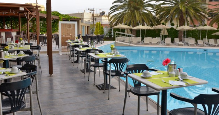 The hotel provides a variety of rooms which offer to the guests all the facilities they need for a comfortable stay during their holidays in Rethymno. Rooms & Suites, overlooking the Cretan sea, swimming pools surrounded by evergreen trees and flowers of every colour will make you relax in a warm and vibrant atmosphere. The Restaurant opens early in the morning for an American buffet breakfast and in the evening for dinner with international and Greek specialties. There are also special vegetarian meals available. At the swimming pools the guests can lie down and relax in the bright and warm Cretan sun, whilst enjoying their refreshing drinks.