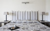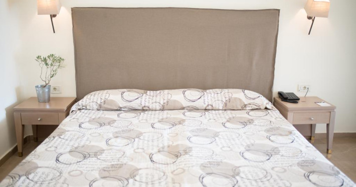 Sunt disponibile 148 camere. Fiecare cameră dispune de un aparat pentru preparare cafea sau ceai, cană-fierbător și minibar. Oaspeții pot solicita serviciul de room service pentru a servi masa sau diverse băuturi. Camerele luminoase de la Minos Palace Hotel & Suites sunt dotate cu gresie sau parchet, aer condiționat, Tv și seif. În camere există baie cu cadă sau duș, foehn, articole de toaletă gratuite, precum și halate de baie și papuci. Unele camere au balcon cu vedere la mare, unde oaspeții pot admira apusul sau răsăritul soarelui. Oaspeții au acces gratuit la serviciul Wi-fi în camere. Curățenia in cameră se face zilnic. Toate camerele spațioase de la Minos Palace Hotel & Suites au zonă de relaxare.