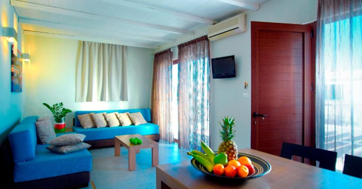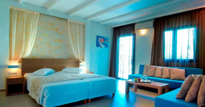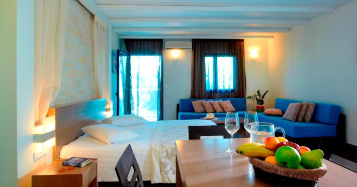 Sunt disponibile 36 camere. În camere există baie cu cadă sau duș ce are în dotare foehn și articole de toaletă gratuite. Unele camere au balcon cu vedere la grădină sau la piscină. Fiecare cameră dispune de mașină pentru preparare cafea sau ceai și fierbător Camerele confortabile de la Minos Village au pardoseală de gresie/ marmură, aer condiționat, Tv cu canale prin satelit și seif. Oaspeții au acces la serviciul Wi-fi în camere contra cost. Toate camerele spațioase de la Minos Village au zonă de relaxare. Fiecare unitate de cazare include o chicinetă utilată cu frigider, plită de gătit și ustensile de bucătărie. De asemenea, sunt disponibile o zonă de luat masa și un cuptor pentru prepararea mâncărurilor. Proprietatea oferă camere pentru familie cu o suprafață mai mare și un număr mai mare de paturi față de cele standard.