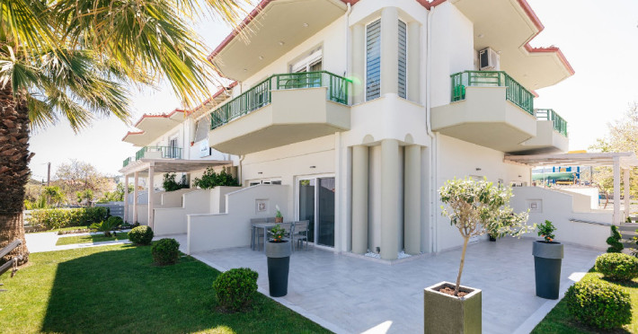Minthi Boutique Apartments is located just 250 meters from the beach of Chanioti and 150 meters from the center of the village. The apartments are equipped with air conditioning, unique modern design and fully furnished veranda. In a very close distance there is a variety of restaurants, cafe|s and supermarkets. The closest bus station is just 150 meters away while the International airport Macedonia is 90 km away. There is free parking spot available in our facilities. The apartments are equipped with Coco - Mat mattresses, connection to a telephone center, laptop size safety box, fully equipped kitchen with fridge and cooking hobs.Other amenities: Hairdryer, DVD player, CD player, large beds (>2 meters) , slippers, bathrobes and personal care products electric kettle, coffee maker, outdoor furniture, outdoor dining room, clothes dryer. **********Datorita dinamicitatii domeniului disponibilitatea ofertelor se modifica de la un moment la altul. De aceea ofertele sunt valabile in limita locurilor disponibile. Agentia nu este responsabila pentru eventualele neconcordante care pot aparea intre informatiile privind tarifele si alte detalii din site si informatiile primite in agentie. In aceste cazuri vor avea prioritate, intotdeauna, informatiile primite in agentie.