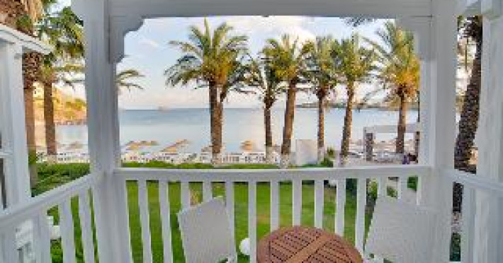 Near Akyarlar Plajı. Located in Bodrum, Ladonia Hotels Mio Bianco is by the sea, a 1-minute drive from Akyarlar Plajı and 5 minutes from Karaincir Beach. This all-inclusive hotel is 9.7 mi (15.6 km) from Bitez Beach and 14.7 mi (23.6 km) from Yalikavak Marina. Make yourself at home in one of the 217 air-conditioned rooms featuring minibars and LCD televisions. Complimentary wireless internet access keeps you connected, and satellite programming is available for your entertainment. Bathrooms have showers and hair dryers. Conveniences include safes and complimentary bottled water, and housekeeping is provided daily. This hotel is all inclusive. Rates include meals and beverages at onsite dining establishments. Charges may be applied for dining at some restaurants, special dinners and dishes, some beverages, and other amenities. You can enjoy a meal at the restaurant serving the guests of Ladonia Hotels Mio Bianco , or stop in at the snack bar/deli. Mingle with other guests at the complimentary reception, held daily. Relax with your favorite drink at the bar/lounge or the beach bar. A complimentary buffet breakfast is served daily from 7:00 AM to 11:00 AM. Relax on the private beach or enjoy other recreational amenities such as a waterslide and a sauna.Datorita dinamicitatii domeniului disponibilitatea ofertelor se modifica de la un moment la altul. De aceea ofertele sunt valabile in limita locurilor disponibile. Agentia nu este responsabila pentru eventualele neconcordante care pot aparea intre informatiile privind tarifele si alte detalii din site si informatiile primite in agentie. In aceste cazuri vor avea prioritate, intotdeauna, informatiile primite in agentie.