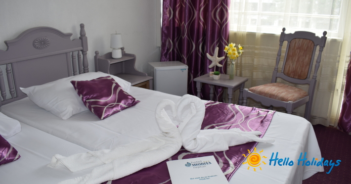 InformatiiHOTEL MIORITA este situat la 150 m fata de centrul statiunii si 700 m fata de plaja. Acesta este structurat pe 5 etaje si cuprinde in prezent, dupa investitiile si lucrarile intreprinse: 93 camere superioare, modernizate integral (inclusiv mobilierul si televizoarele). Aceste camere au bai mai mari, 233 camere - categoria 3* standard, cu baile renovate si mobilierul reconditionat si 20 camere la parter - renovate, fara balcon.