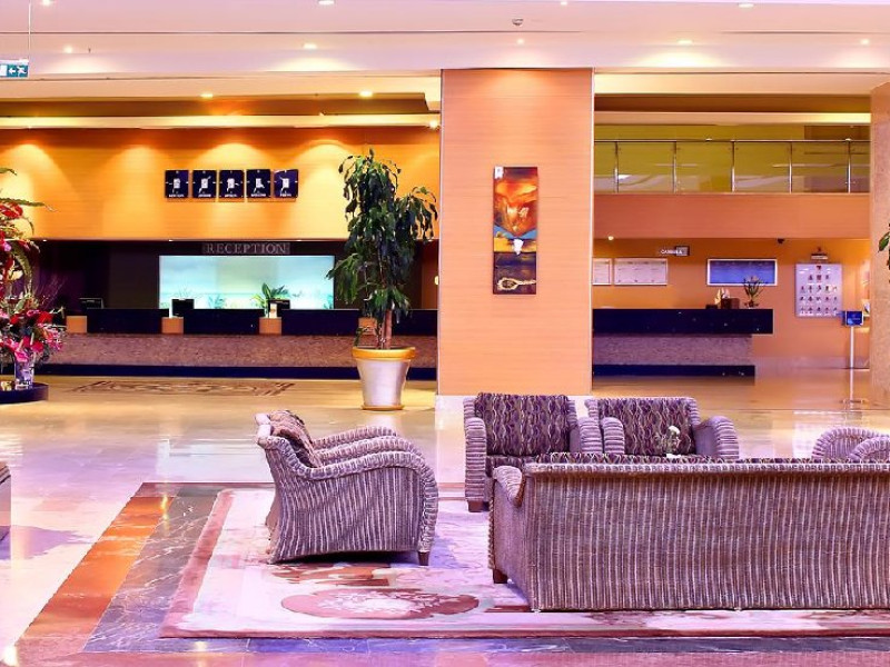 Facilitati camere: Hotelul este construit pe o suprafata totala de 135.000 mp si are in total 692 de camere repartizate intr-o singura cladire cu nou etaje. Camerele sunt dotate cu telefon, TV satelit, minibar, seif, aer conditionat centralizat, internet wireless, baie cu cabina de dus, uscator de par, balcon.