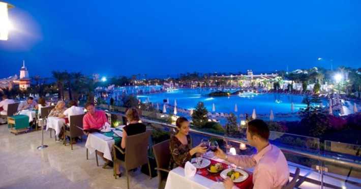 Hotelul dispune de 5 baruri, inclusiv un bar pe plaja, un bar la piscina, un bar in hol si o discoteca care serveste o gama larga de bauturi locale, internationale si premium si de 11 restaurante, inclusiv 2 restaurante tip bufet si 9 restaurante à la carte, care servesc o gama larga de preparate din bucataria turceasca, internationala, mexicana si italiana.