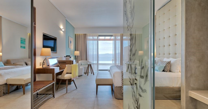 Sunt disponibile 300 camere. În camere există baie cu cadă sau duș, foehn, articole de toaletă gratuite, precum și halate de baie și papuci. Camerele confortabile de la Miraggio Thermal Spa Resort au pardoseală de gresie/ marmură, aer condiționat, Tv cu canale prin satelit și seif. Fiecare cameră dispune de un aparat pentru preparare cafea sau ceai, cană-fierbător și minibar. Oaspeții pot solicita serviciul de room service pentru a servi masa sau diverse băuturi. Unele camere au balcon cu vedere la mare sau la piscină. Oaspeții au acces gratuit la serviciul Wi-fi în camere. Curățenia in cameră se face zilnic. Proprietatea oferă camere pentru familie cu o suprafață mai mare și un număr mai mare de paturi față de cele standard. Se pot rezerva de asemenea camere pentru nefumători.