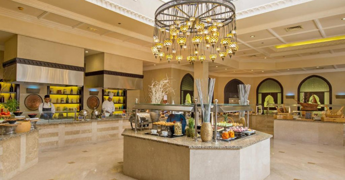 Miramar Al Aqah Resort oferă o varietate de opțiuni de luat masa, inclusiv specialități tradiționale din Orientul Mijlociu, bucătărie italiană și preparate asiatice.