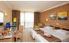 Proprietatea pune la dispozitia oaspetilor camere si apartamente elegante si spatioase, dintre care majoritatea cu vedere spre mare. Camerele sunt dotate cu telefon, TV cu ecran plat si programe prin satelit, canapea, aer conditionat, frigider, dus, uscator, balcon sau terasa.