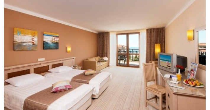 Club Hotel Miramar de 4 stele din Obzor se inscrie in linia hotelurilor apreciate, fiind unul dintre cele mai luxoase hoteluri pe care le poti gasi in Bulgaria. Club Miramar, situat pe cea mai frumoasa si fina plaja, ofera un ambient extraordinar destinat relaxarii si petrecerii vacantei intr-un mod cat mai placut. Conditiile de cazare exceptionale sistemul Ultra All Inclusive 24 de ore, bogat si variat, alaturi de servicii de inalta calitate, fac din Club Miramar din Obzor un hotel foarte cautat de turisti pentru vacanta de vara, Sarbatorile de Paste , vacanta de 1 Mai si nu numai.