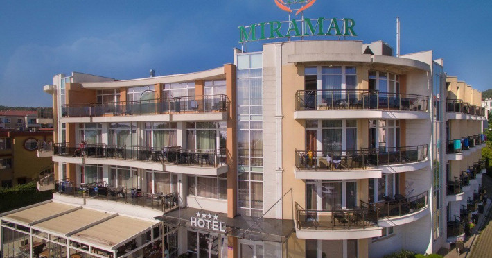 Localizare: Hotelul Miramar, o cladire spectaculoasa cu patru etaje, se afla doar 3 kilometri sud de Sozopol. Hotelul este situat la 50 de metri de plaja.Facilitati hotel: Hotelul pune la dispozitia clientilor: piscine exterioare, piscina interioara, sezlonguri cu umbrela, sala de gimnastica, tenis de masa, loc de joaca, darts, sauna, baie de aburi, animatie, program de divertisment, tratamente SPA (contra cost), teren de tenis (contra cost), sporturi nautice (contra cost), seif (contra cost), hammam (contra cost).