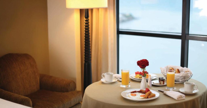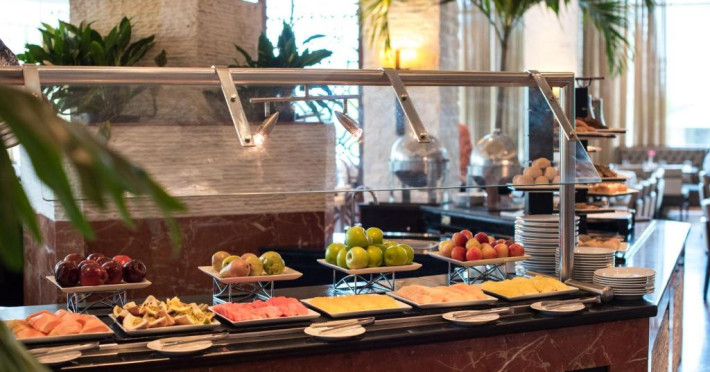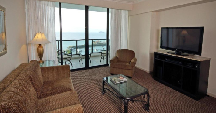 Restaurantul Bay View este specializat in servicii tip bufet, organizează seri culturale și are vedere la portul de agrement. Acesta servește mancăruri tipice panameze, fructe de mare, bucătărie spaniolă și oferă o mare varietate de deserturi. Barul din hol oferă oaspeților o varietate de băuturi.