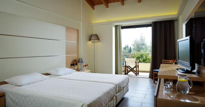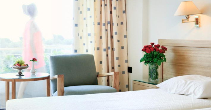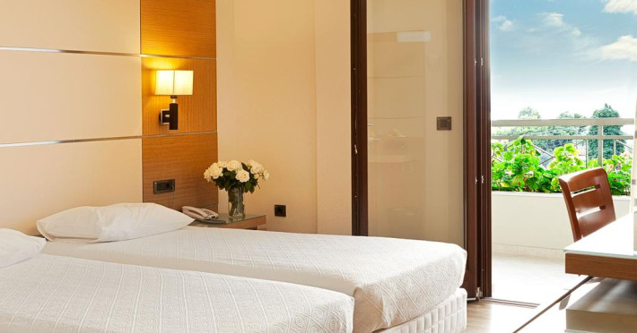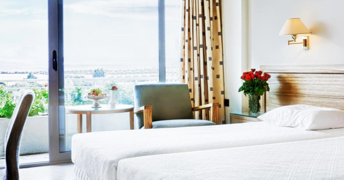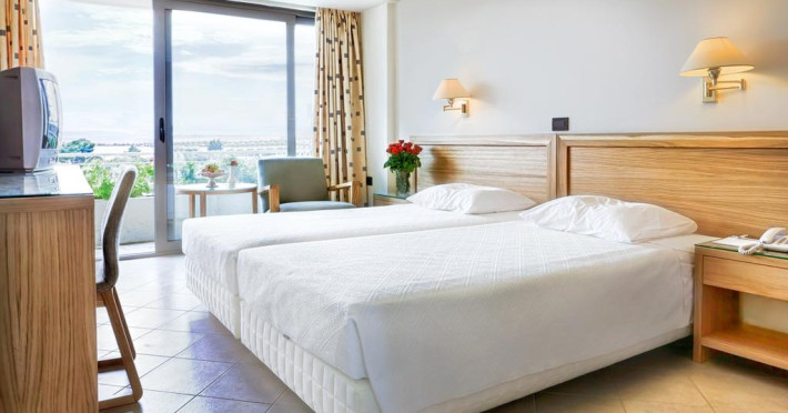 Fiecare cameră dispune de minibar. În camere există baie cu cadă sau duș ce are în dotare foehn și articole de toaletă gratuite. Camerele luminoase de la Miramare Hotel Eretria sunt dotate cu parchet, aer condiționat, Tv și seif. Camerele au balcon cu masă și scaune unde pot fi petrecute momente de relaxare. Oaspeții au acces gratuit la serviciul Wi-fi în camere. Curățenia in cameră se face zilnic. Proprietatea oferă camere pentru familie cu o suprafață mai mare și un număr mai mare de paturi față de cele standard. Se pot rezerva de asemenea camere pentru nefumători.