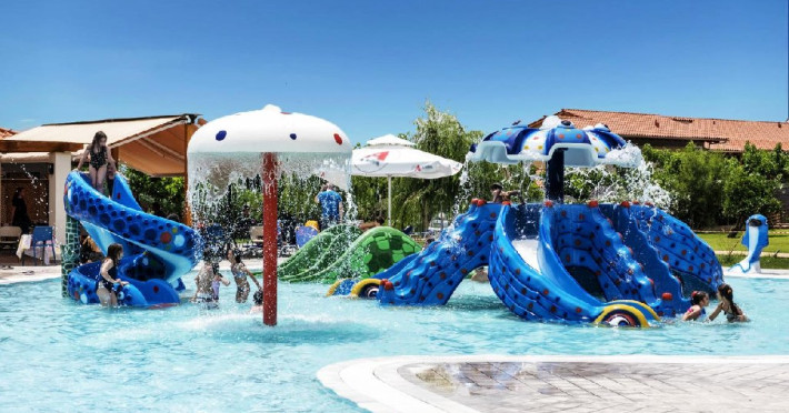 Facilitati hotel: gradina, receptie, piscina, bar & restaurant, lift, parcare, sala conferinte pentru 200 de persoane, sala fitness, teren sport: baschet & tennis, Aqua Park, mini-market.