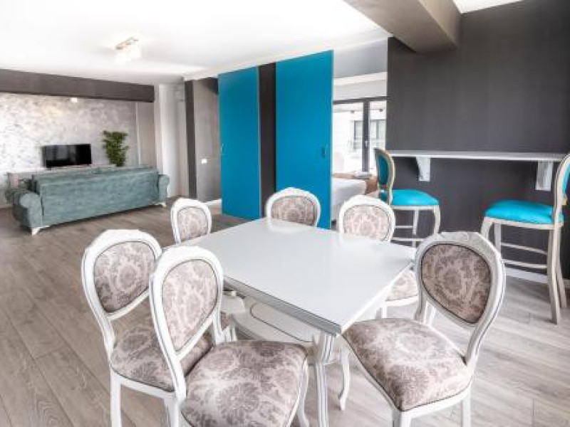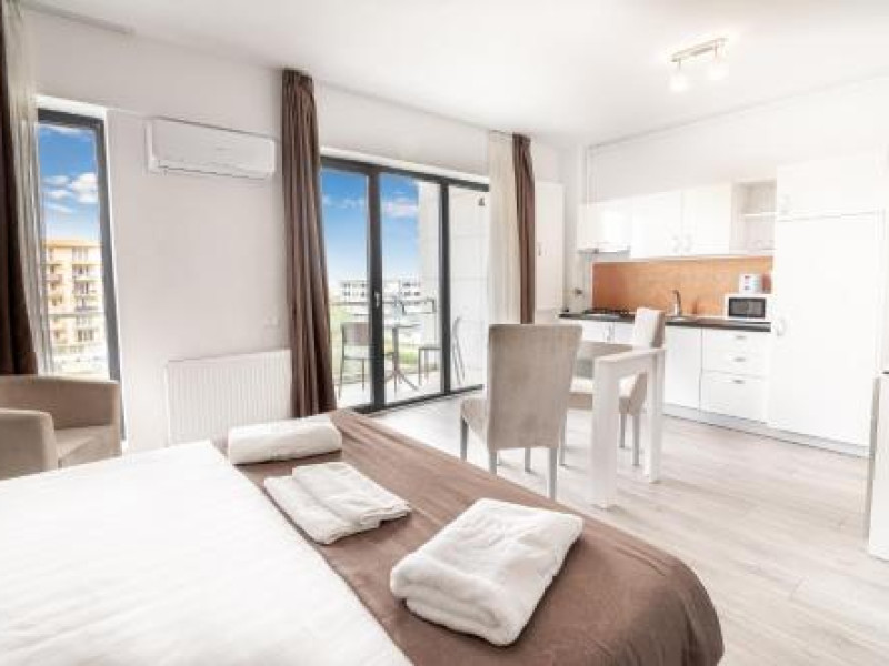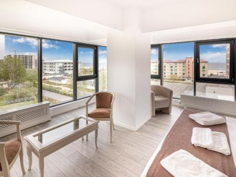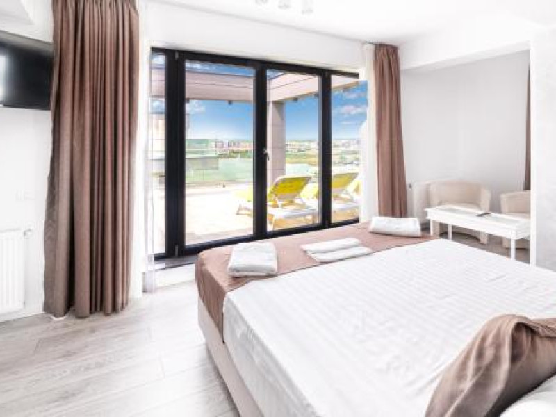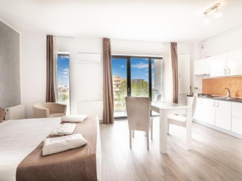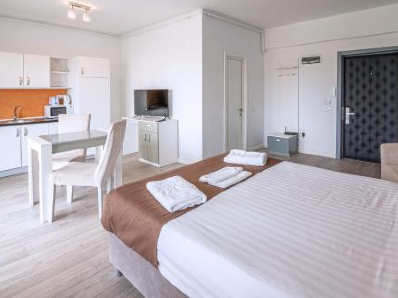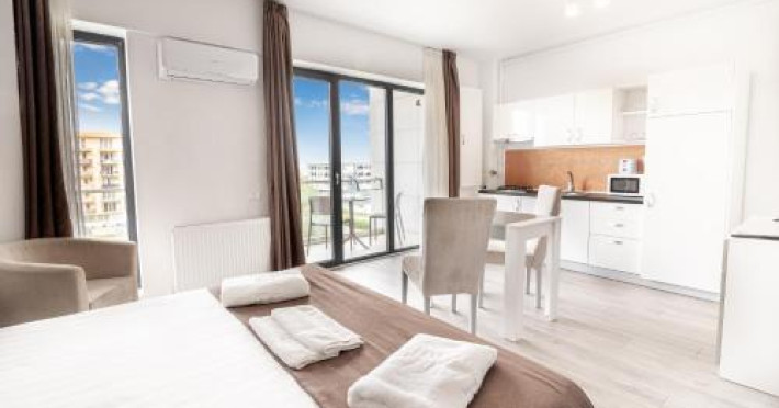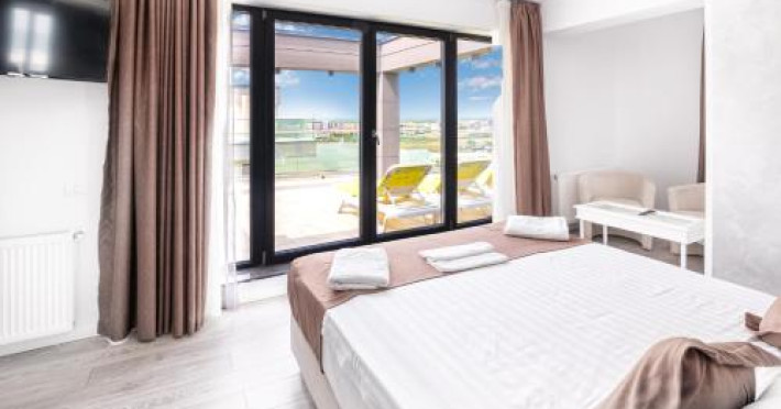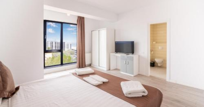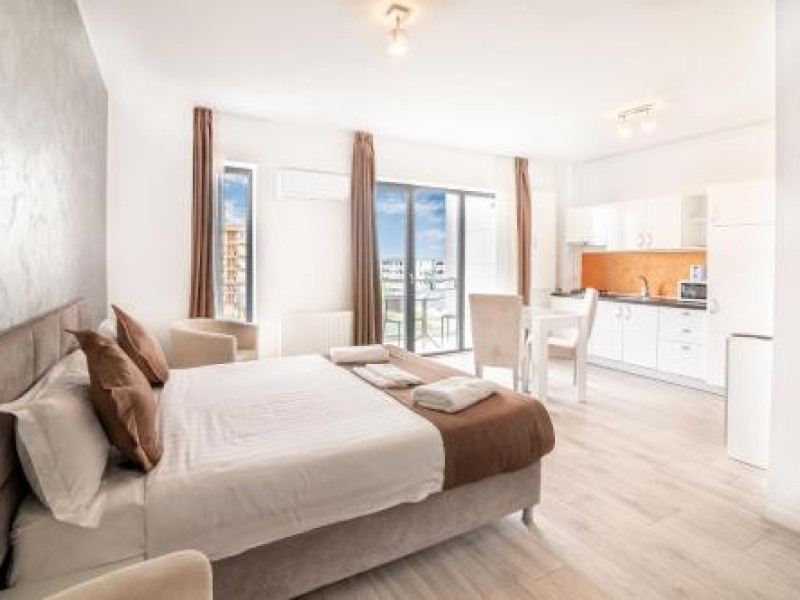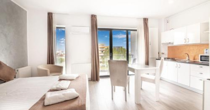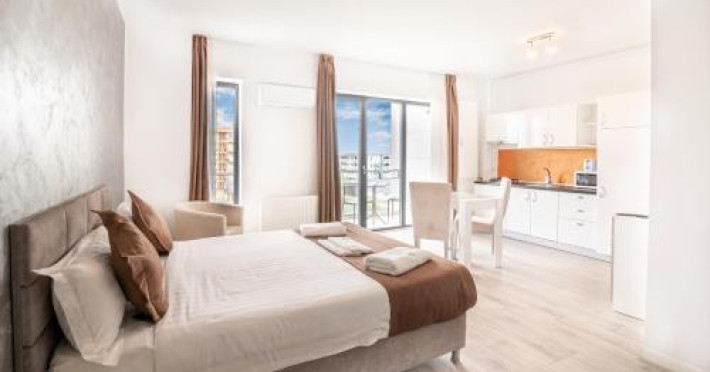 Hotel Overview: Nestled near the pristine waters of Lake Siutghiol, Miramare Residence Aparthotel combines luxury with an eco-conscious ethos. Its modern architecture with sustainable materials and energy-efficient practices stands as a testament to its commitment to environmental stewardship.Accommodations: Miramare Residence Aparthotel caters to a variety of travelers with its richly appointed rooms and suites. Guests can enjoy a comfortable stay in one of the 15 elegantly appointed guestrooms. Each room at Miramare Residence is a haven of luxury, featuring full-sized kitchenettes, private balconies or patios, and deep soaking bathtubs. Guests can indulge in the comfort of premium bedding, marble bathrooms, and exclusive toiletries while enjoying either serene garden views or vibrant cityscapes. State-of-the-art in-room technology includes free Wi-Fi and flat-screen TVs for a seamless connection and entertainment experience.Amenities: Miramare offers an array of top-tier amenities including concierge services, valet parking, and private cabana rentals. The hotel caters to business travelers with expansive business centers equipped with high-speed internet and meeting facilities. Exclusive VIP services such as butler service and limousine rentals underscore its luxury offerings.Dining Options: Dine at Miramares acclaimed restaurant or enjoy snacks at the chic coffee shop/cafe. The hotel features multiple dining venues including a rooftop bar that offers panoramic views along with signature dishes by Michelin-starred chefs. Guests can start their day with cooked-to-order breakfasts available daily.Nearby Location Transportation: The hotel is strategically located 5 kilometers from the nearest airport and close proximity to major train stations, making it easily accessible for both domestic and international travelers.Nearby Attractions:Mamaia Beach - 5 km away offering vibrant beach activitiesCity Park Mall - 3 km away for upscale shopping experiencesOvidiu Island Pier - 5.6 km ideal for picturesque sunsetsWellness And Activities: The spa at Miramare offers a sanctuary of wellness with treatments ranging from hydrotherapy to signature massages inspired by global traditions. A fully equipped fitness center hosts yoga sessions enhancing guests physical well-being alongside an elegant pool area perfect for relaxation.Policies Check-In Instructions:Extra-person charges may apply depending on property policy.Government-issued photo identification required at check-in.Special requests subject to availability upon check-in; additional charges may apply.Guests must contact this property in advance to reserve cribs/infant beds or rollaway/extra beds.This property accepts credit cards, debit cards, cash.Summary: Miramare Residence Aparthotel excels in offering luxurious accommodations just steps away from Lake Siutghiols shores catered towards families business travelers seeking upscale lodging experiences Featuring extensive wellness facilities multiple dining optionsDisclaimer notification: Amenities are subject to availability and may be chargeable as per the hotel policy.Datorita dinamicitatii domeniului disponibilitatea ofertelor se modifica de la un moment la altul. De aceea ofertele sunt valabile in limita locurilor disponibile. Agentia nu este responsabila pentru eventualele neconcordante care pot aparea intre informatiile privind tarifele si alte detalii din site si informatiile primite in agentie. In aceste cazuri vor avea prioritate, intotdeauna, informatiile primite in agentie.