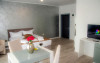 Garsoniera cu o suprafata de 40 mp dispune de un pat matrimonial de 160 x 200 si o bucatarie cu zona de pregatit si de luat masa, aparat de cafea si ceai, balcon cu vedere spre mare, lac sau oras, aer conditionat, Tv, baie cu dus, uscator de par.