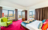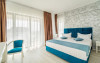 Family Suite cu balcon cu o suprafata de 100 mp , dispune de dou dormitoare cu pat matrimonial, living cu sofa, doua bai si bucatarie. Balcon cu vedere spre mare, lac sau oras