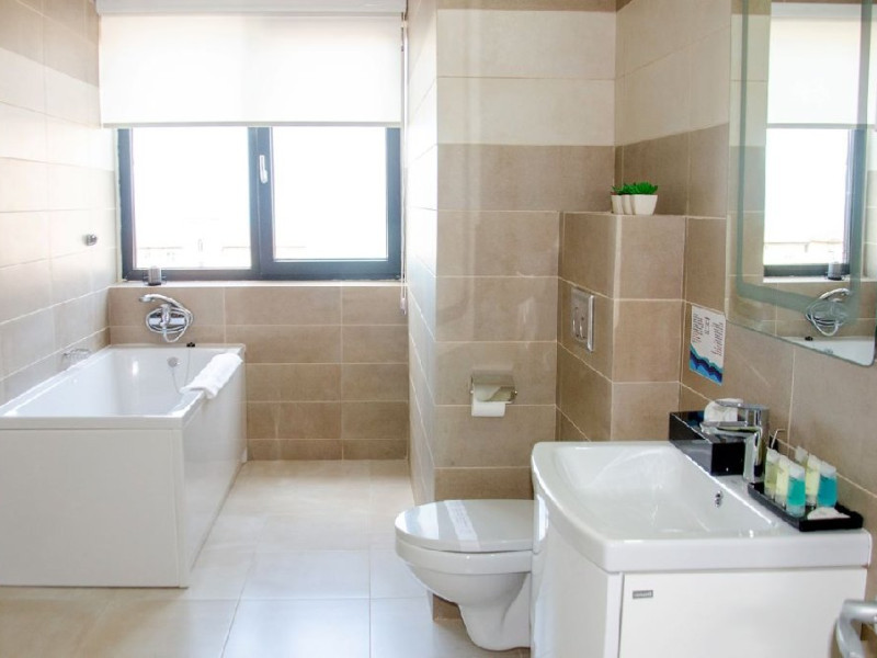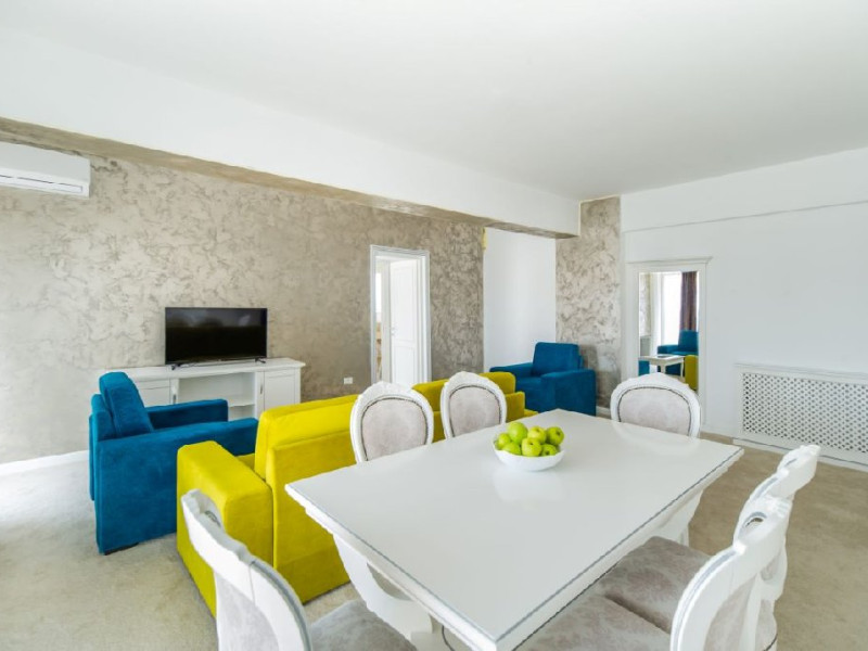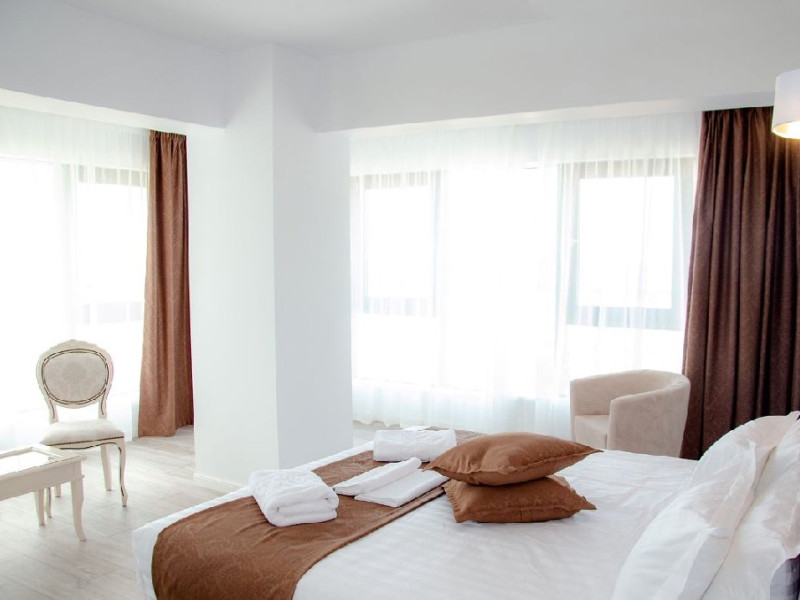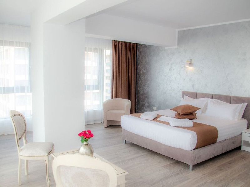 Senior Suite cu o suprafata de 90 mp dispune de dormitor cu pat matrimonial, living cu canapea extensibila, baie baia cu cada si dus, bucatarie, aer conditionat, Tv, baie cu dus, uscator de par. Balcon cu vedere spre mare, lac sau oras