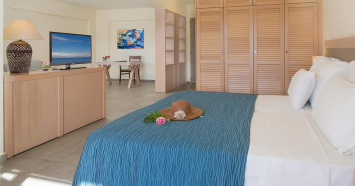 Unele camere au balcon cu vedere la mare sau la piscină. În camere există baie cu cadă sau duș ce are în dotare foehn și articole de toaletă gratuite. Camerele confortabile de la Miramare Resort au pardoseală de gresie/ marmură, aer condiționat, Tv cu canale prin satelit și seif. Fiecare cameră dispune de cană pentru prepararea apei calde. Oaspeții pot solicita serviciul de room service pentru a servi masa sau diverse băuturi. Oaspeții au acces gratuit la serviciul Wi-fi în camere. Curățenia in cameră se face zilnic. Toate camerele spațioase de la Miramare Resort au zonă de relaxare cu canapea, ceea ce oferă un plus de confort. Fiecare unitate de cazare are frigider. De asemenea, este disponibilă o zonă de luat masa. Proprietatea oferă camere pentru familie cu o suprafață mai mare și un număr mai mare de paturi față de cele standard. Se pot rezerva de asemenea camere pentru nefumători.