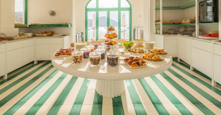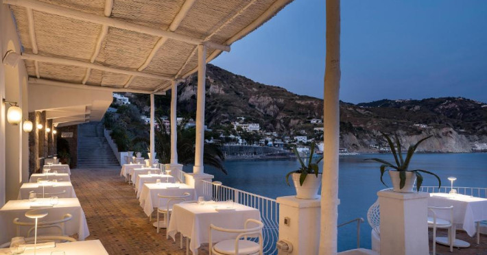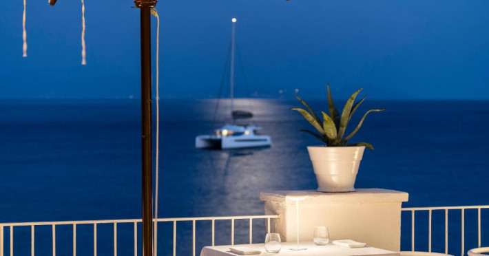 Seara se poate lua masa la restaurantul care servește delicatese mediteraneene insoțite de un pahar de vin rafinat. Oaspeții pot alege să ia masa pe terasă și să admire vederea panoramică.