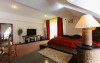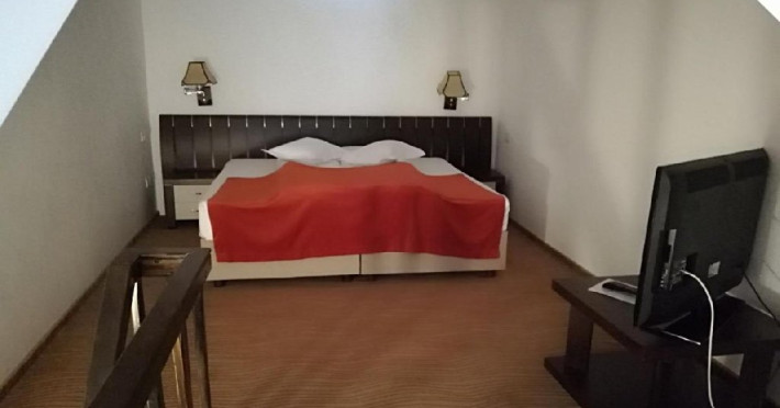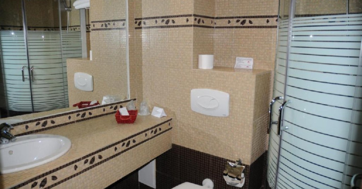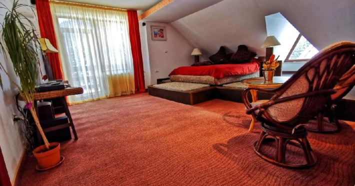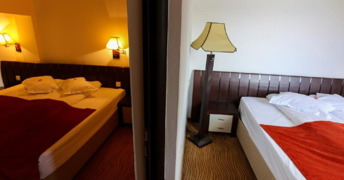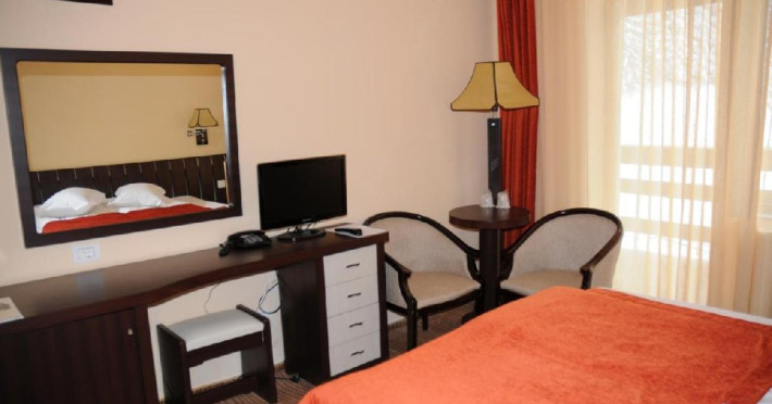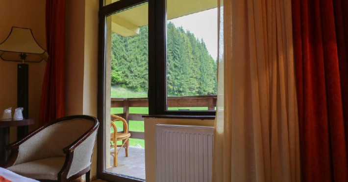 Camere confortabile, cu balcon exterior, vedere la Muntii Bucegi, suprafata de 17 mp, dotate cu mobilier modern, doua paturi apropiate de 110 cm / pat, LCD cu diagonala de 55 cm, TV cablu, internat wireless gratuit, minibar frigorific, seif, baie proprie cu cabina de dus, uscator de par.