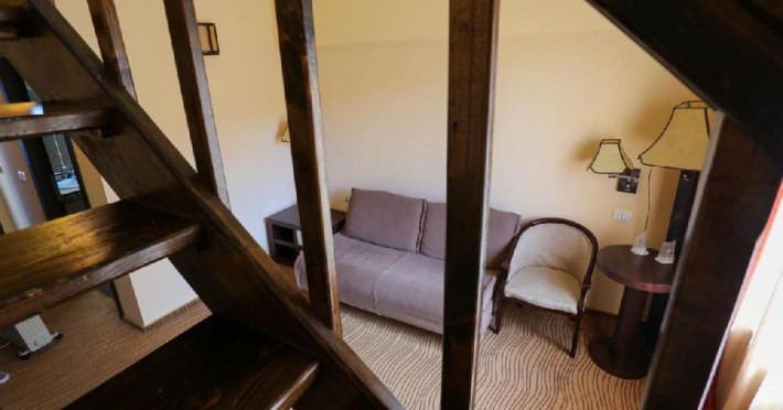 Apartamente Duplex Studio sunt compuse din: living cu o suprafata de 15 mp, un dormitor deschis de 15 mp, despartit de living printr-o scara interioara de lemn, baie proprie cu cabina de dus si uscator de par si balcon cu vedere spre padure / raul Bangaleasa / parcare. In living este o canapea ce permite acomodarea a maxim 2 copii, LCD cu diagonala de 55 cm, minibar frigorific, seif, iar dormitorul este dotat cu doua paturi apropiate de 110 cm / pat, care la cerere se pot desparti si LCD cu diagonala de 55 cm.