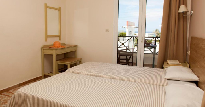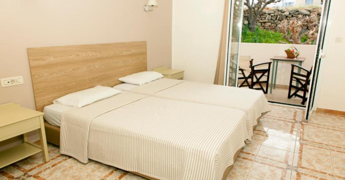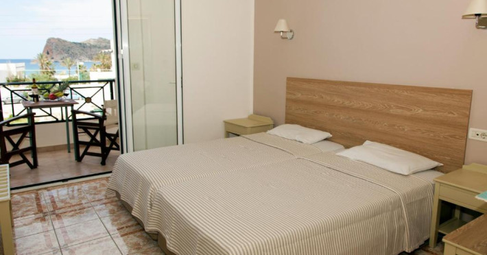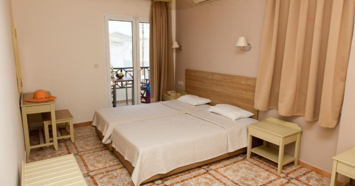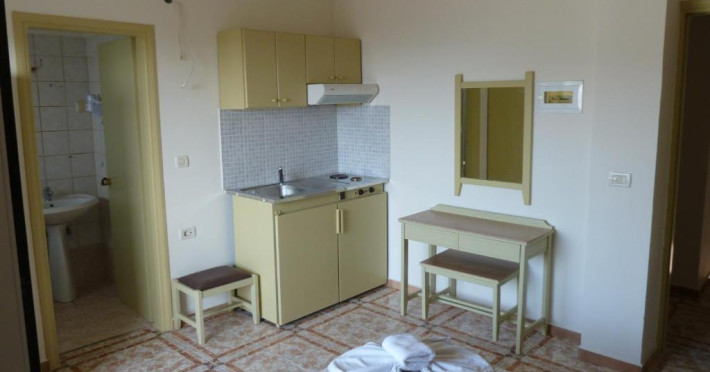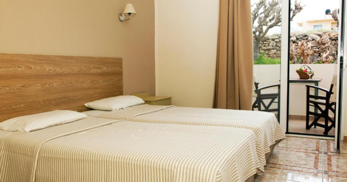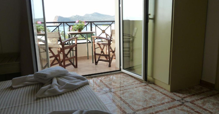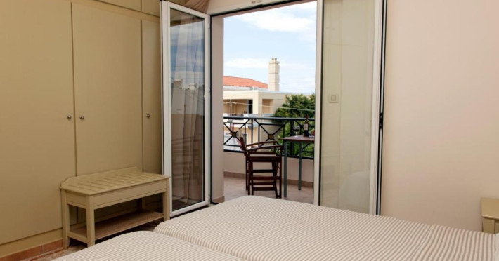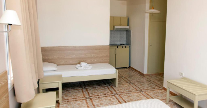 Camerele confortabile de la Mithos Apartments sunt dotate cu pardoseală de gresie/ marmură, aer condiționat, Tv și seif. Fiecare cameră dispune de cană-fierbător. În camere există baie cu duș prevăzută cu foehn. Unele camere au balcon cu vedere la mare. Oaspeții au acces gratuit la serviciul Wi-fi în camere. Curățenia in cameră se face zilnic. Fiecare unitate de cazare include o chicinetă utilată cu frigider, plită de gătit și ustensile de bucătărie. De asemenea, este disponibilă o zonă de luat masa. Proprietatea oferă camere pentru familie cu o suprafață mai mare și un număr mai mare de paturi față de cele standard.