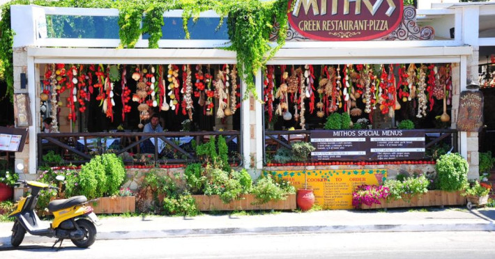 La Mithos Apartments oaspeții au la dispoziție un restaurant care servește mâncare à la carte. Preparate din bucătăria grecească așteaptă să fie degustate în fiecare zi. Oaspeţii îşi pot pregăti micul dejun şi alte mese şi le pot savura chiar pe balcon.