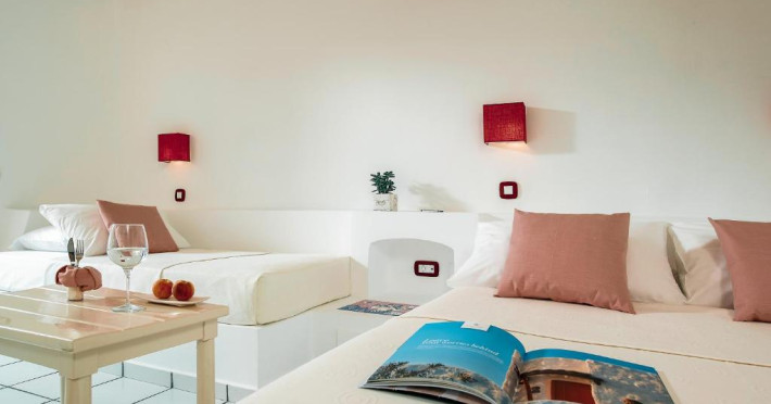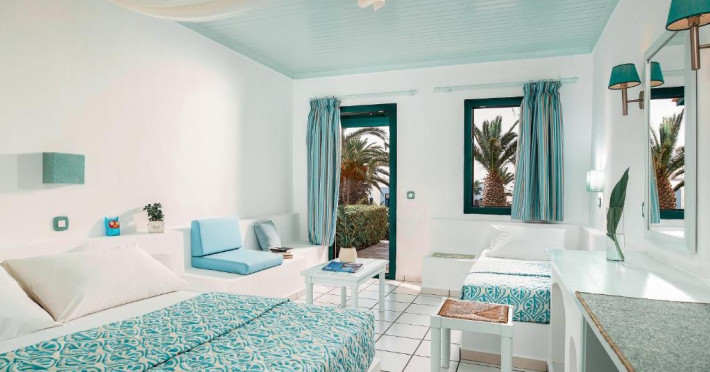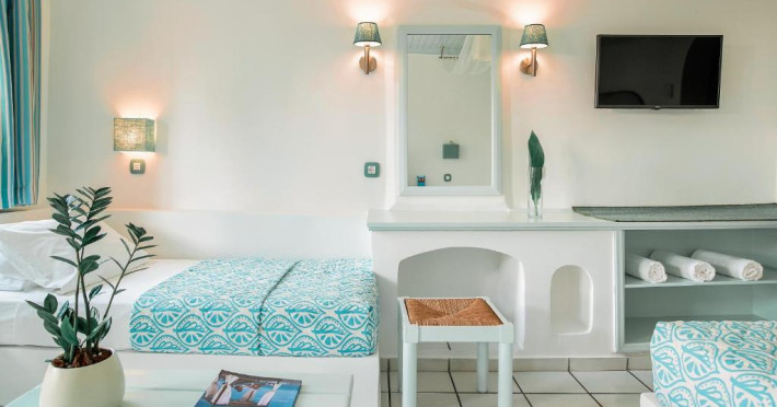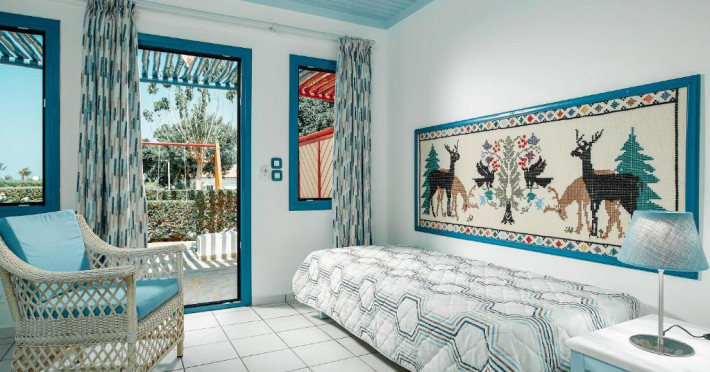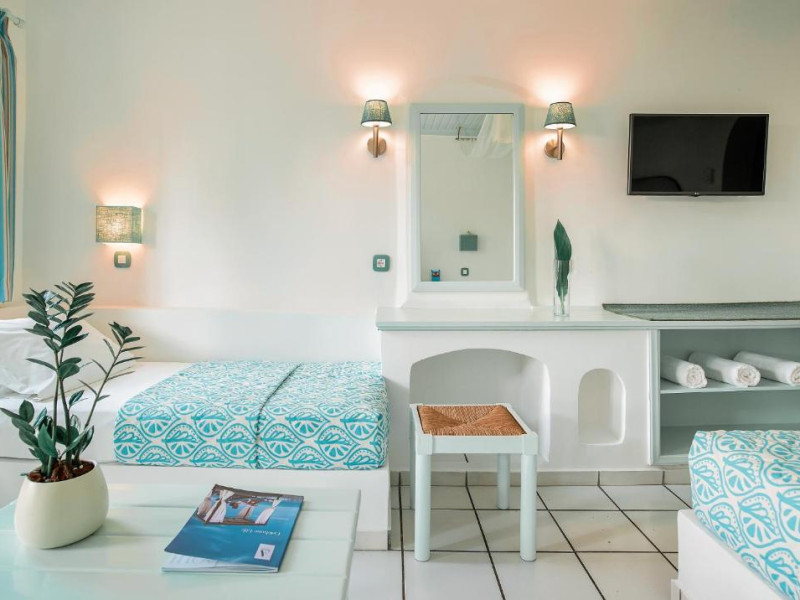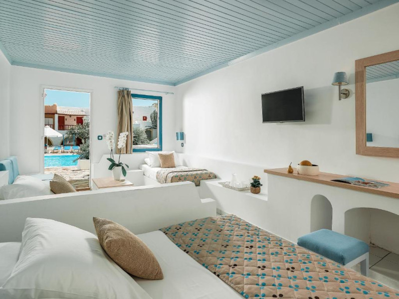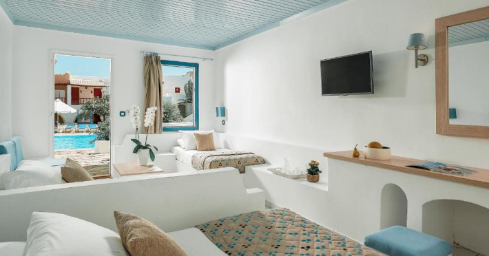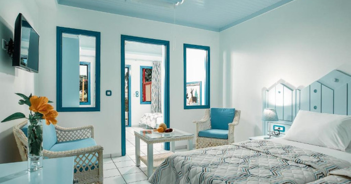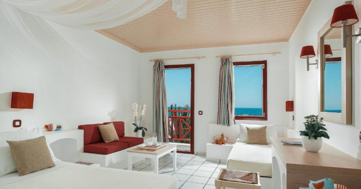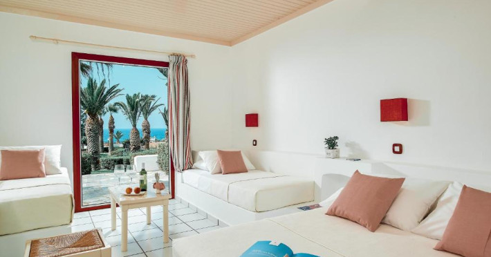 La acest hotel, camerele sunt dotate cu climatizare, o zonă de relaxare, un televizor cu ecran plat cu canale prin satelit, o cutie de valori și o baie proprie cu cadă, articole de toaletă gratuite și un uscător de păr. Baia proprie oferă papuci de casă. La Mitsis Cretan Village, fiecare cameră include lenjerie de pat și prosoape.