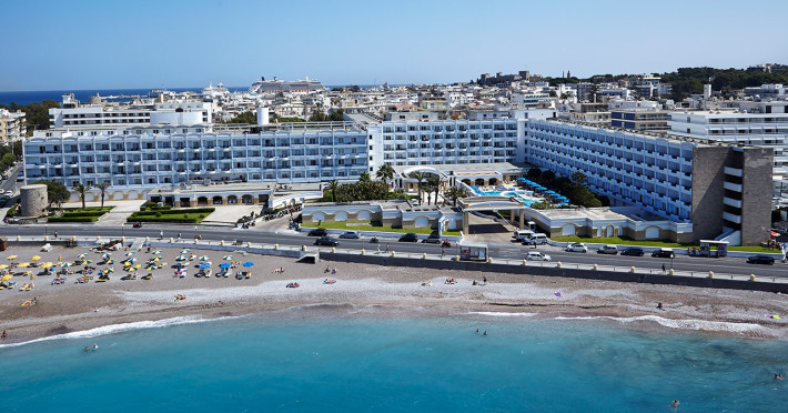 Very well-known 5-star Grand Hotel is located in Rhodes Town next to the sea cost, offering the opportunity to enjoy relax holidays in a luxury City Hotel. The hotel was built in 1964 and comprises a total of 402 rooms and 2 conference rooms spread over five floors. It also offers its guests 3 restaurants, cafeteria is the lobby bar, pool snack bar, gym, laundry services, room services, 1 indoor and 2 outdoor pools and children's pool. Combines the relax vacations next to the beach with the lively center of the city.Very well-known 5-star Grand Hotel is located in Rhodes Town next to the sea cost, offering the opportunity to enjoy relax holidays in a luxury City Hotel. The hotel was built in 1964 and comprises a total of 402 rooms and 2 conference rooms spread over five floors. It also offers its guests 3 restaurants, cafeteria is the lobby bar, pool snack bar, gym, laundry services, room services, 1 indoor and 2 outdoor pools and children's pool. Combines the relax vacations next to the beach with the lively center of the city.